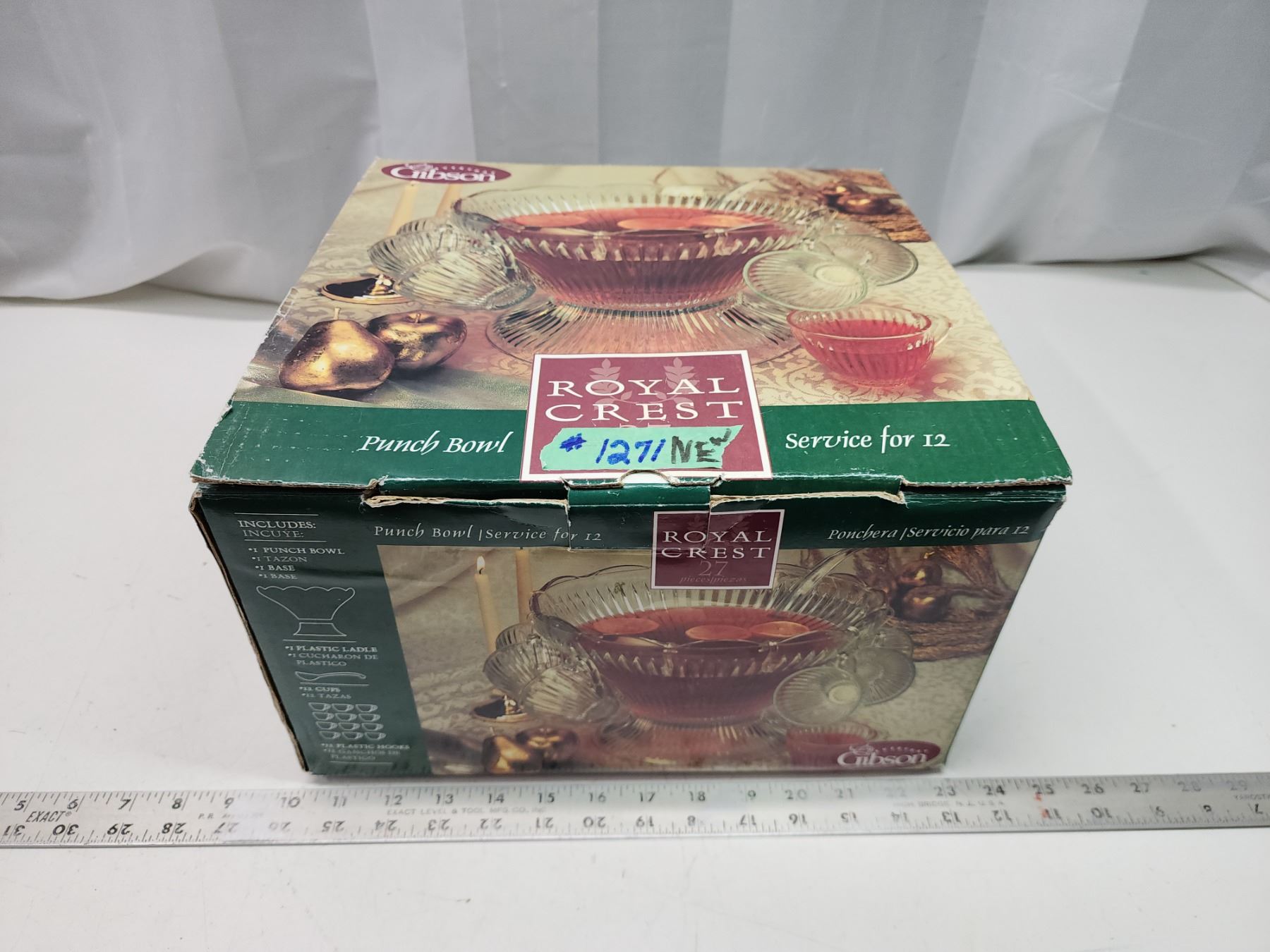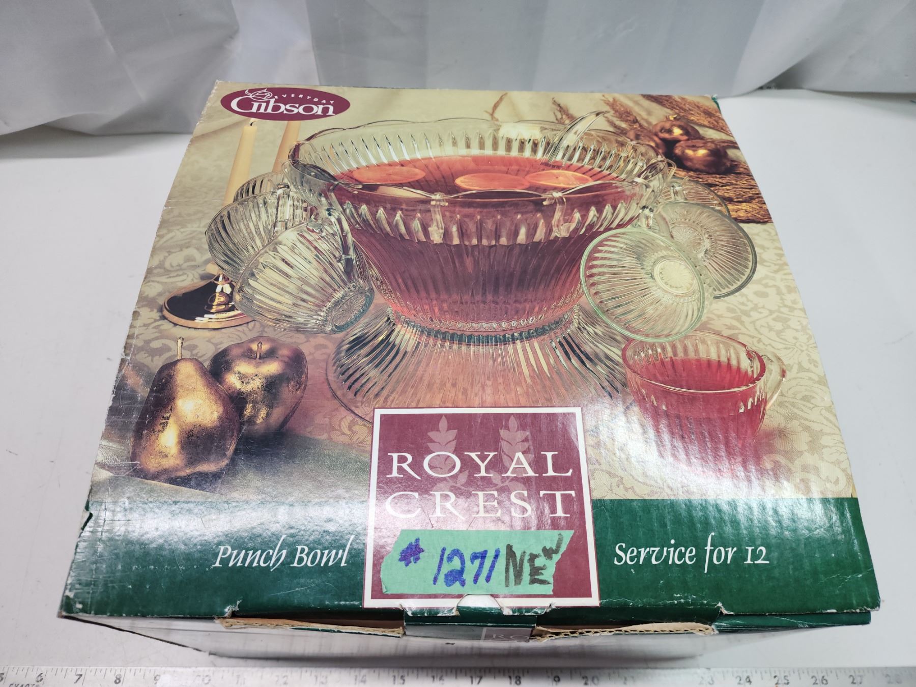 "Royal Crest" glass punch bowl and cups set, in box - new/like new