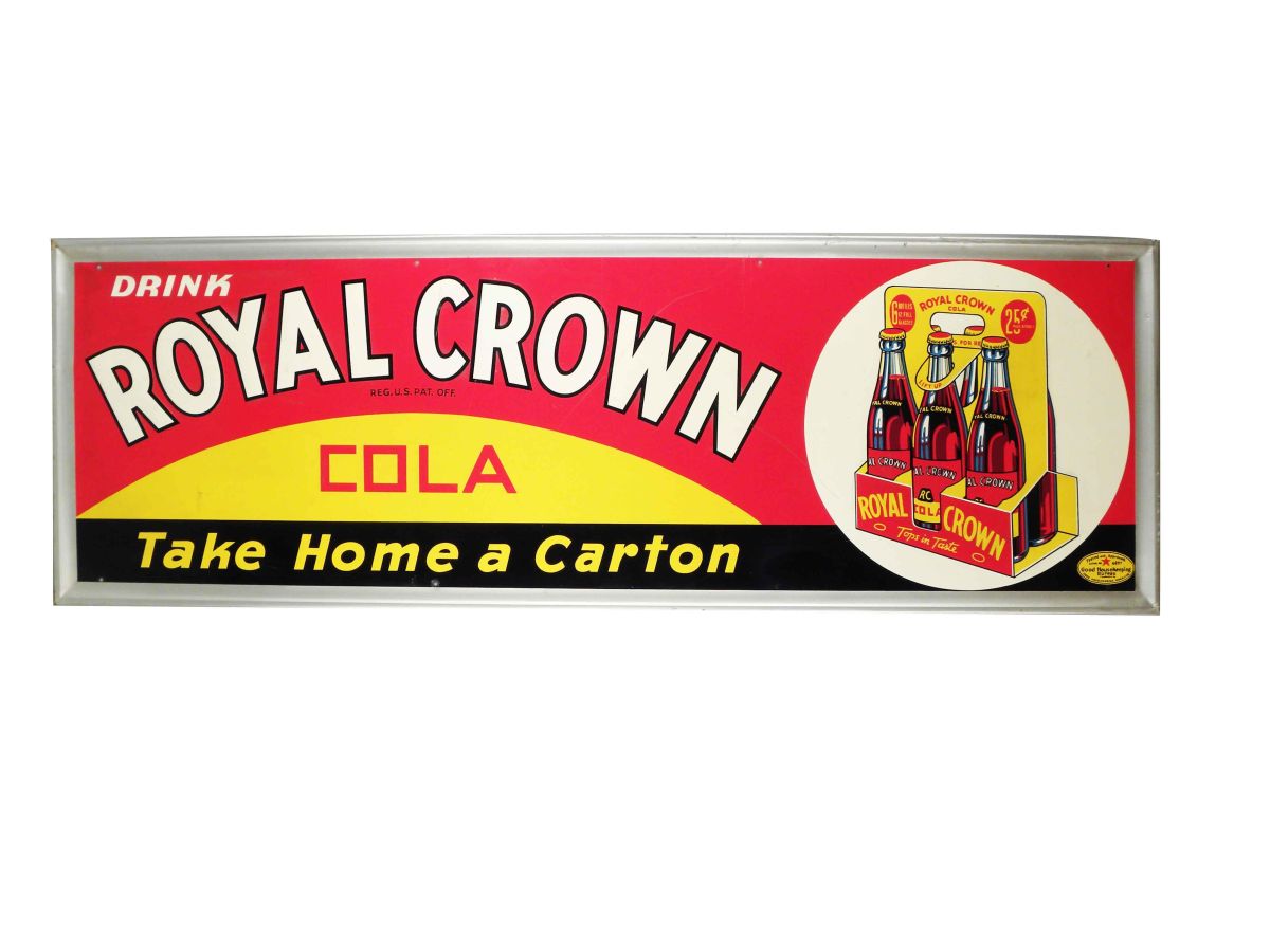 Royal Crown Cola Embossed Self Framed Tin Sign. A few minor scratches otherwise very good condition. 54 X 18 inches.