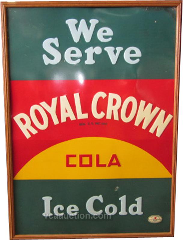 Royal Crown Cola Embossed Tin Sign, "We Serve - Ice Cold" - 21" x 29"