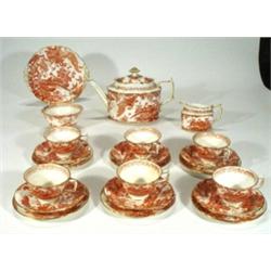 Royal Crown Derby Red Aves patterned six place teaset comprised six cups, saucers, side plates, sandwich plate, milk jug and sugar bowl