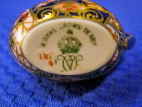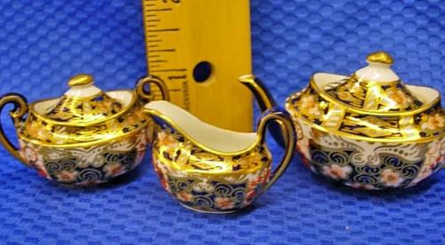 Royal Crown Derby Miniature Tea Pot measures 1 1/2", Creamer measures 1 1/4" & Sugar measures 1 1/4"