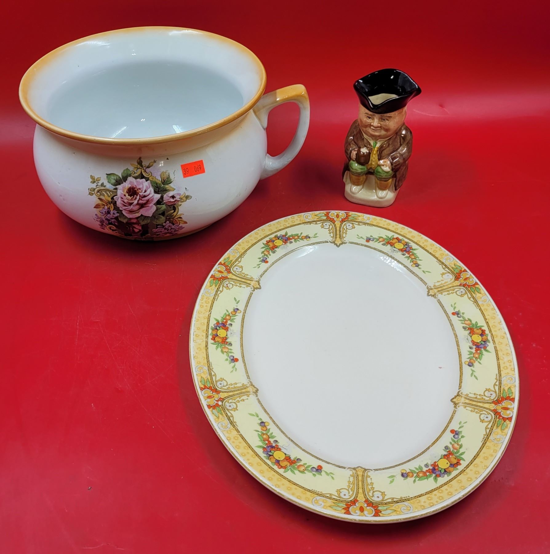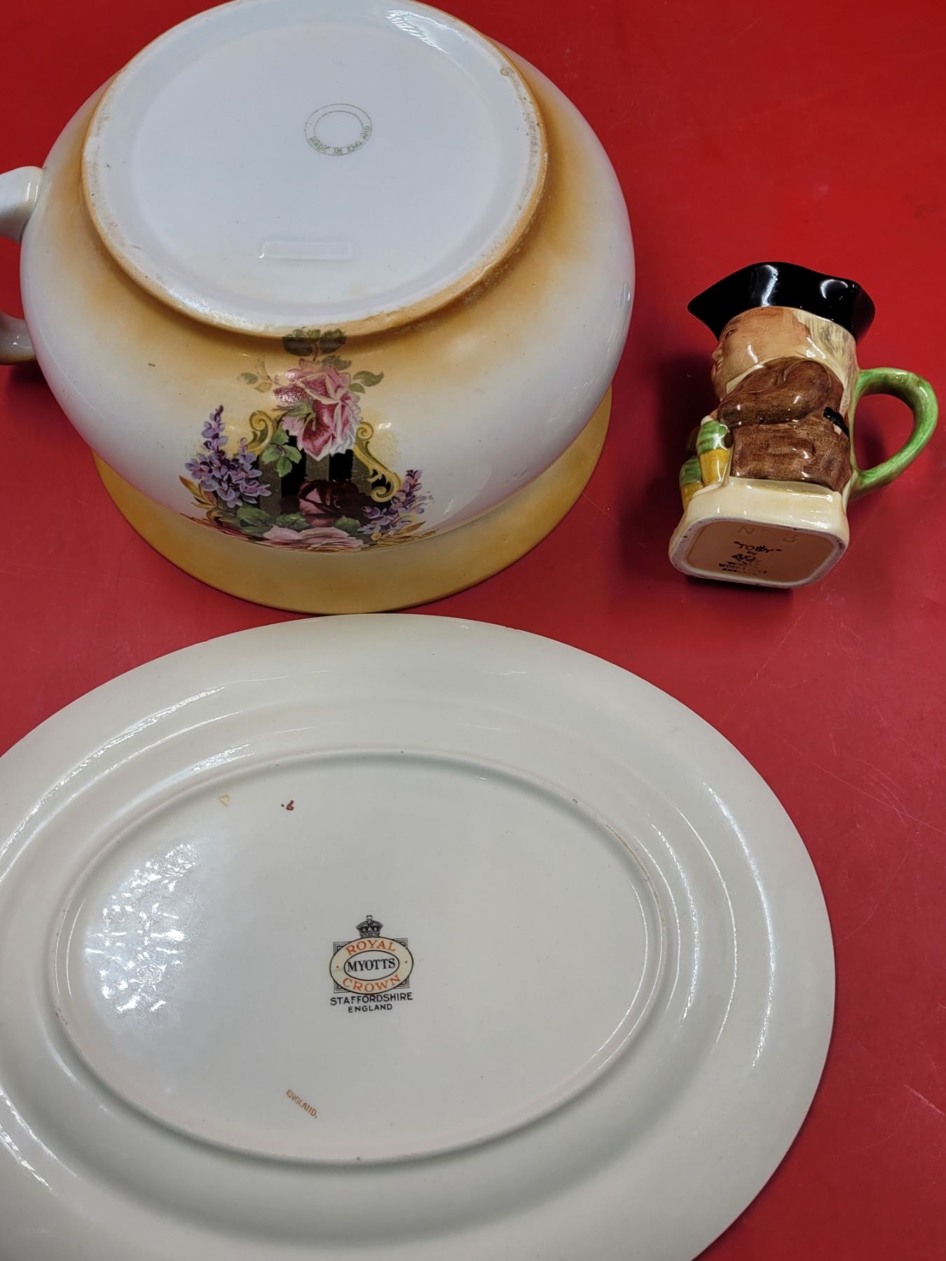 Royal Crown Myotts Oval Plate, Chamber Pot Made in England, & Wood & Sons Toby Jug