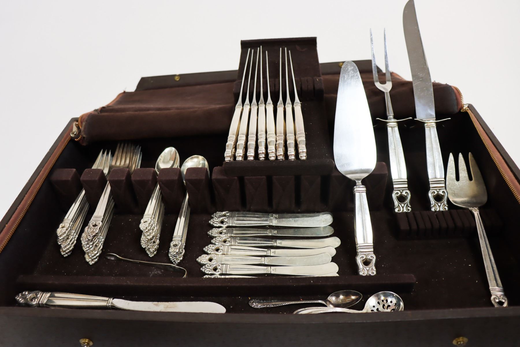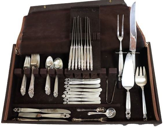 Large sterling silver ware set, including box holder. Approx 74 OZT.
