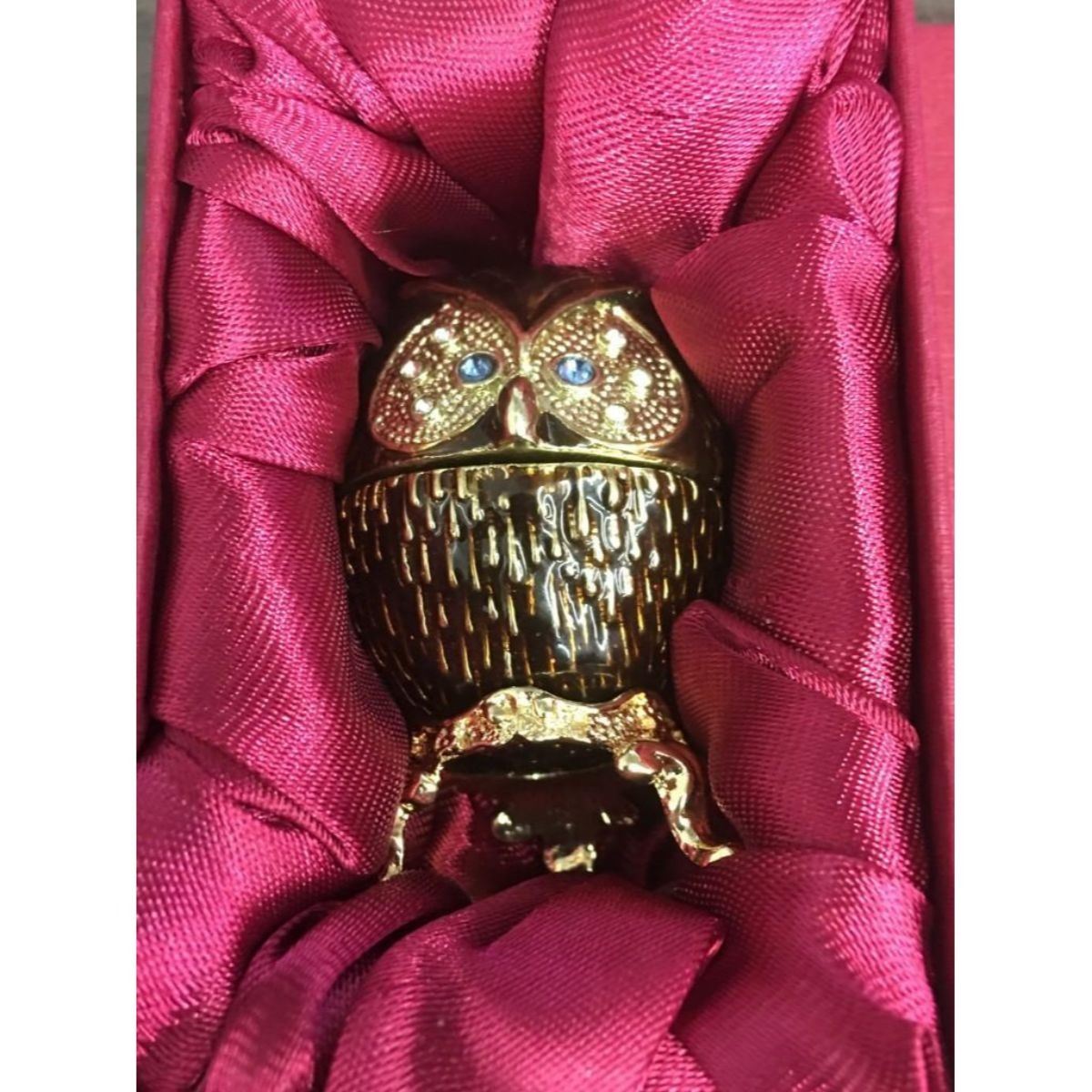 Royal Designed Enameled Semi Precious Stone Owl Trinket / Ring Box On Stand. An Elegantly Designed Semi Precious "Royal Owl" With Semi-Precious Stones And An Enameled Surface. A True Sign Of Great Craftsmanship. View Photos For Further Details