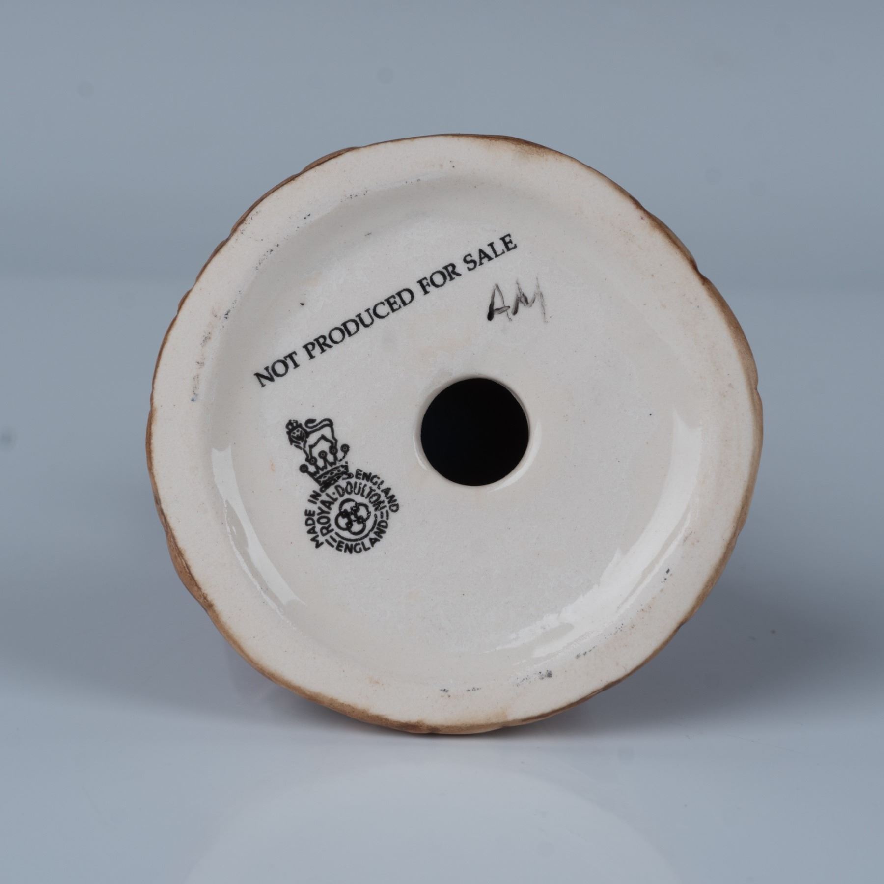 A rare and highly sought-after prototype of the Royal Doulton Bunnykins figurine, Sands of Time DB229 with no ears. This unique example features the distinctive red colorway, a variation seldom seen in production models, making it a standout piece for collectors. Depicting a charming Bunnykins figure observing an hourglass, the piece is intricately hand-painted with rich tones of red and gold accents, showcasing the exquisite craftsmanship Royal Doulton is known for. The base bears the Royal Doulton backstamp, and the words Not Produced for Sale is inscribed, confirming its rarity. This figurine represents a remarkable addition to any Bunnykins or Royal Doulton collection, offering historical and aesthetic appeal.