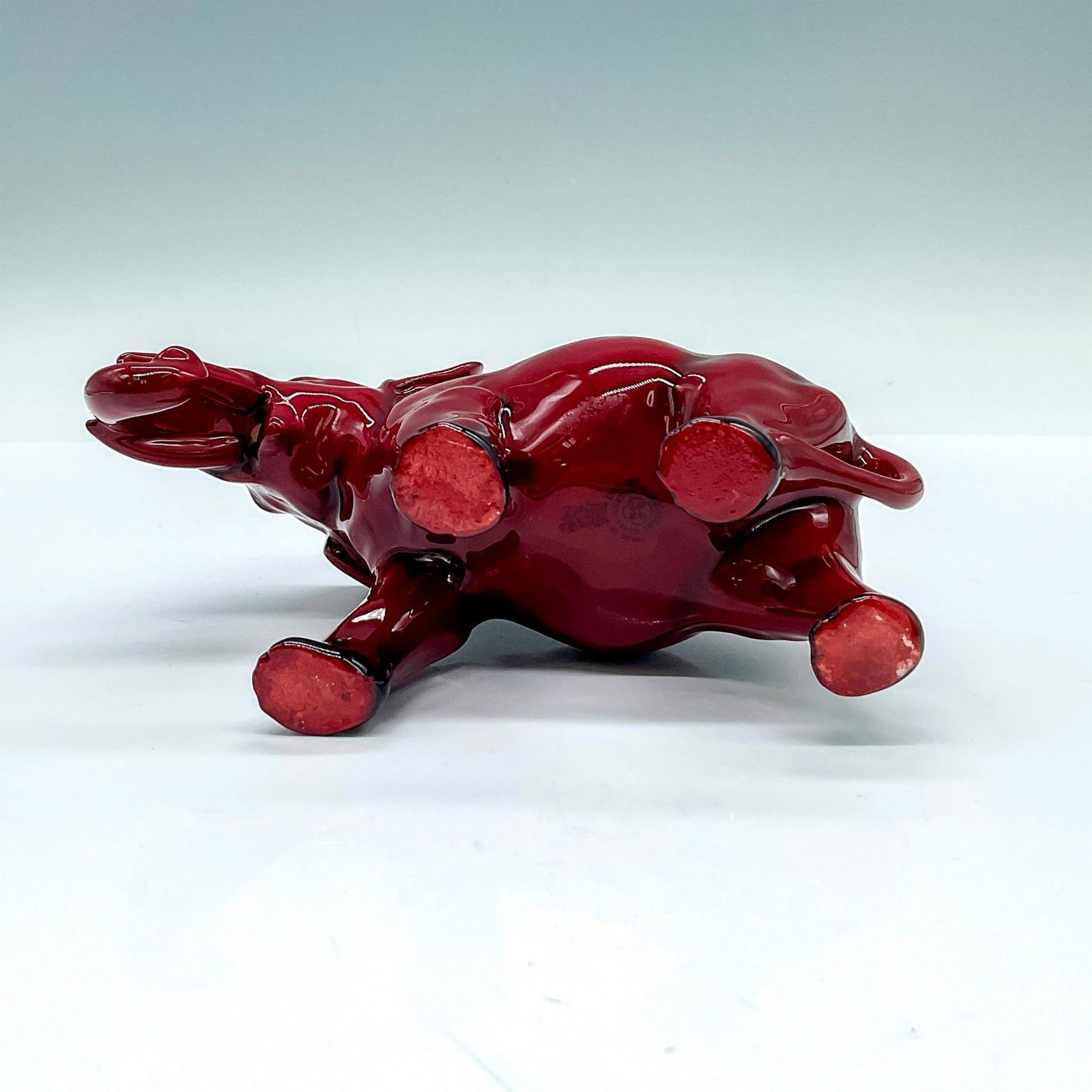 HN186; red and black small glazed porcelain figure of an elephant. Royal Doulton backstamp.
