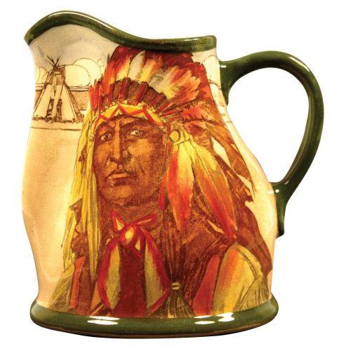 Royal Doulton Porcelain milk pitcher depicting Native Indian and camp. Beautiful color and graphics. No chips or cracks, excellent condition. 6 inches tall.