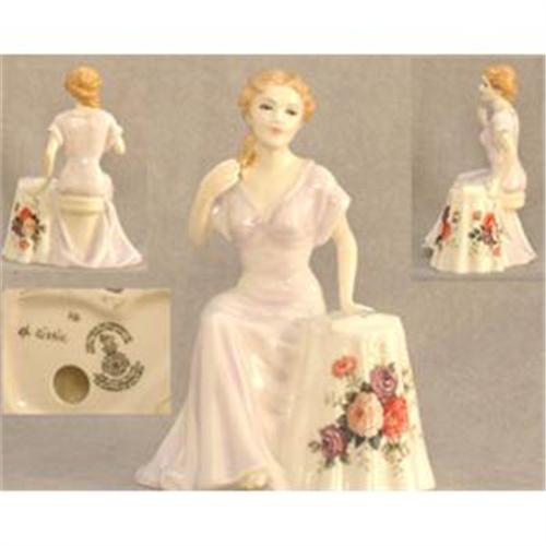 Royal Doulton Prototype Figurine Of A Young Woman In A Lilac Dress Sitting Reading From A Book At An Occasional Table Covered With a Floral Cloth. Probably Not Put Into Production c 1930 Marked To Base Cissie Property Of Royal Doulton.