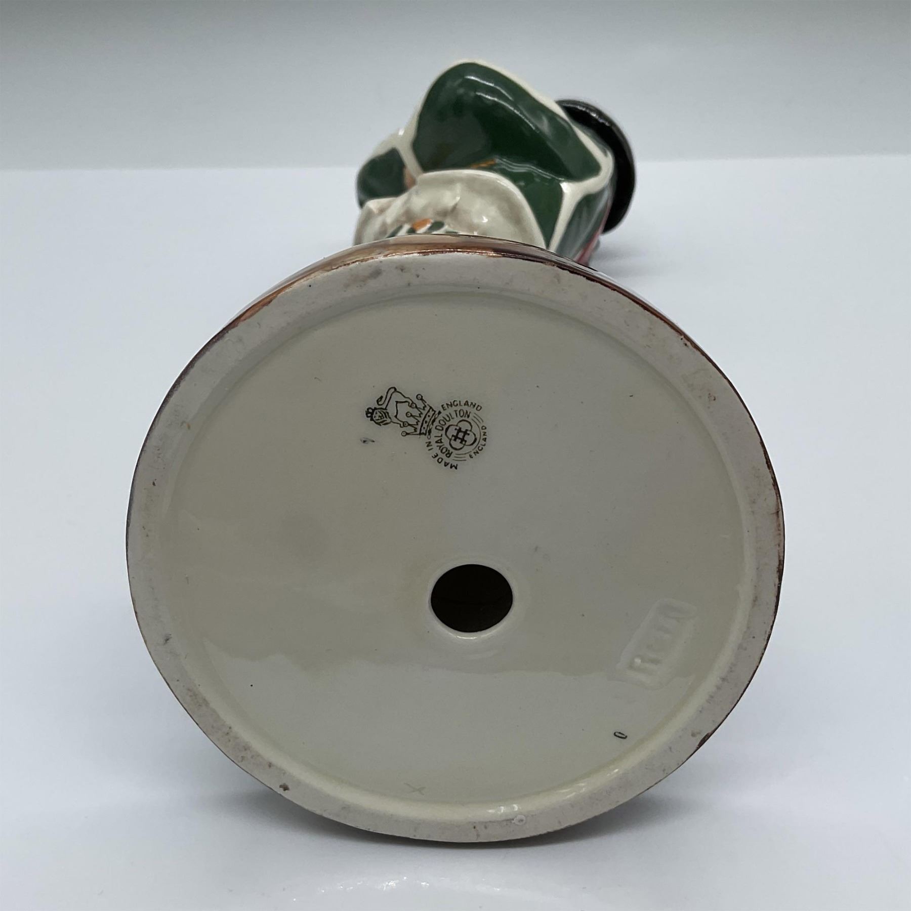 Part of the English (UK) Heritage series. A figure of a man dancing. Dressed in green and white attire with a red and white bandana scarf. Royal Doulton backstamp.