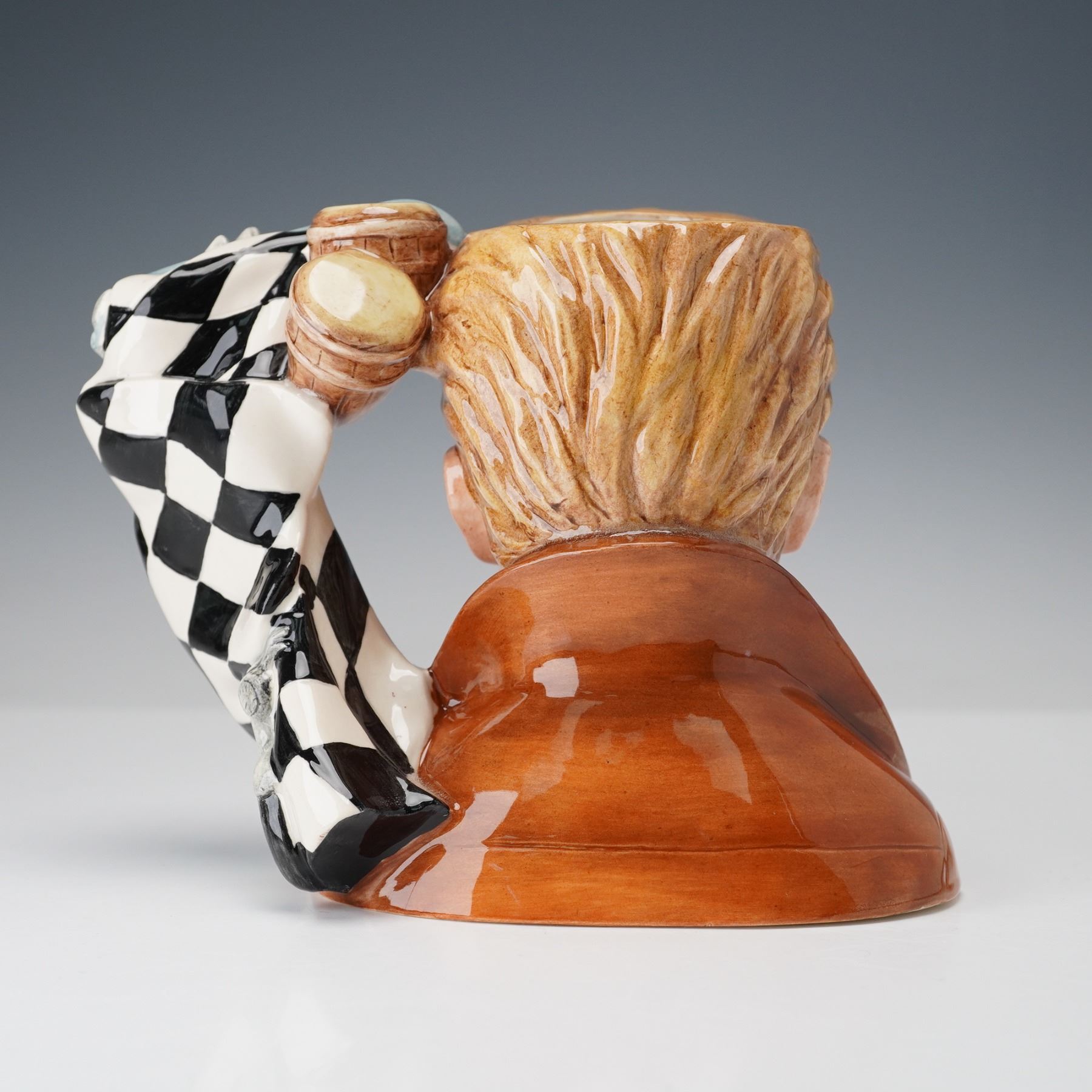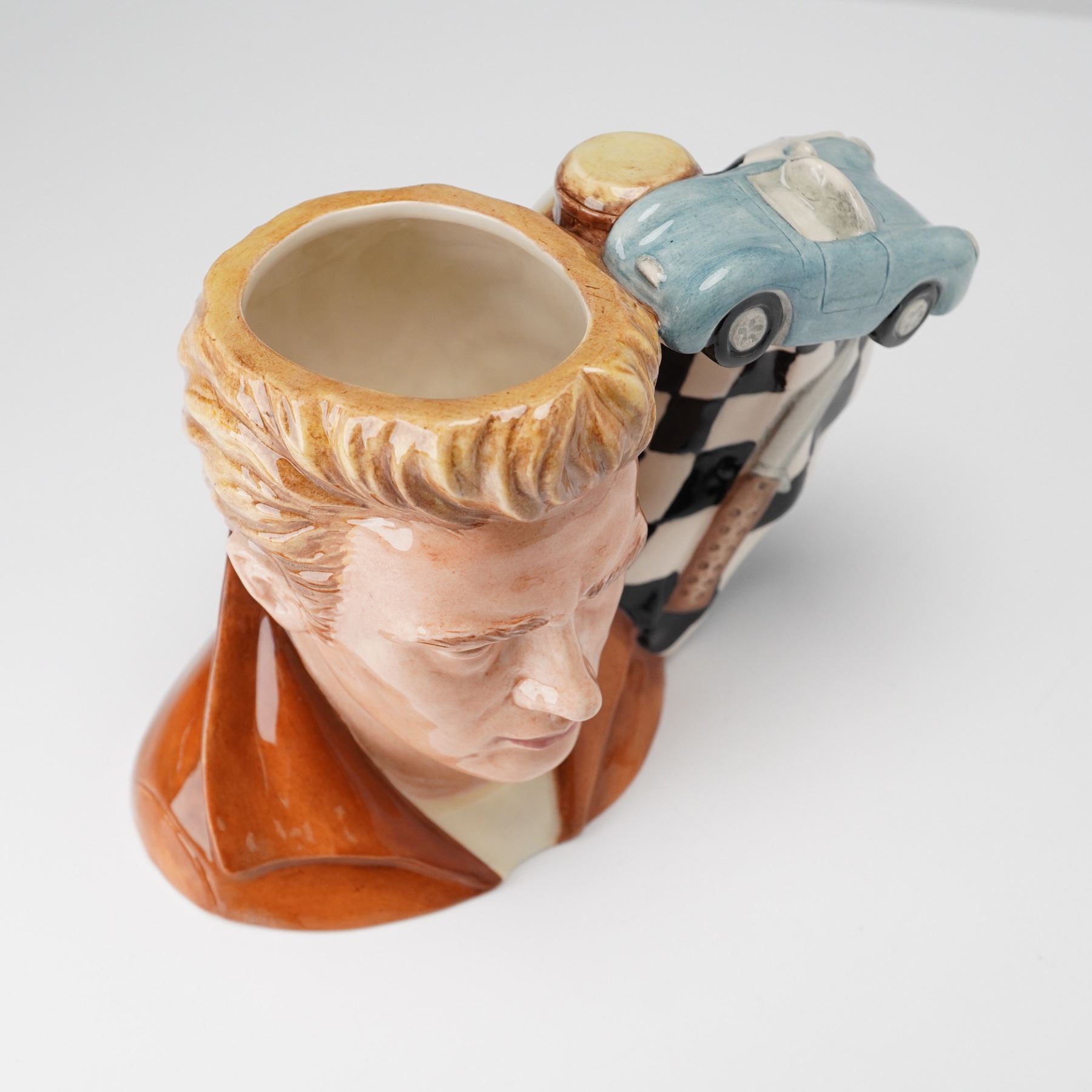 Rebel Without A Cause. Modeled with brown jacket, blue racing car, knife and checkered flag as handle. Royal Doulton backstamp.