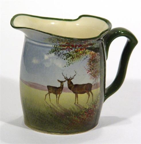 Royal Doulton Seriesware jug, hand painted with stags in a woodland setting, printed factory mark and painted numbers to base, 14cm high