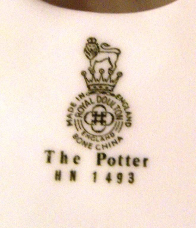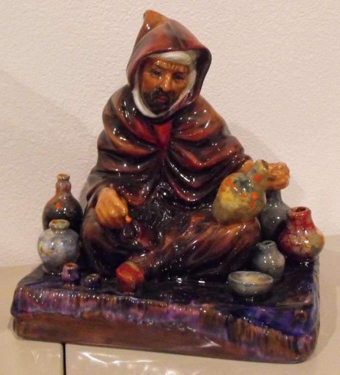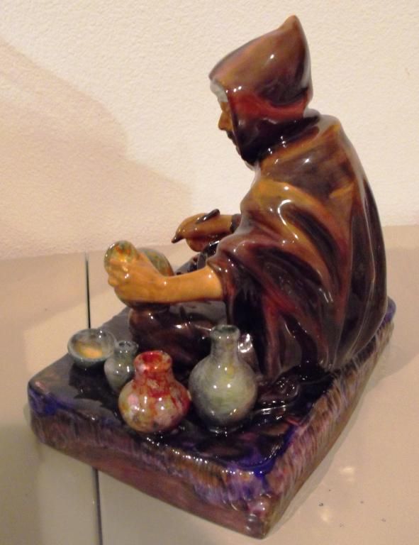 ROYAL DOULTON "THE POTTER". HN 1493. DESIGNED BY CHARLES J. NOKE. MADE IN ENGLAND. MEASURES 7-1/4" TALL AND 6-1/2" X 5" WIDE. THECOLORS ON THIS PIECE ARE SO VIBRANT AND THE WORKMANSHIP IS OUTSTANDING.