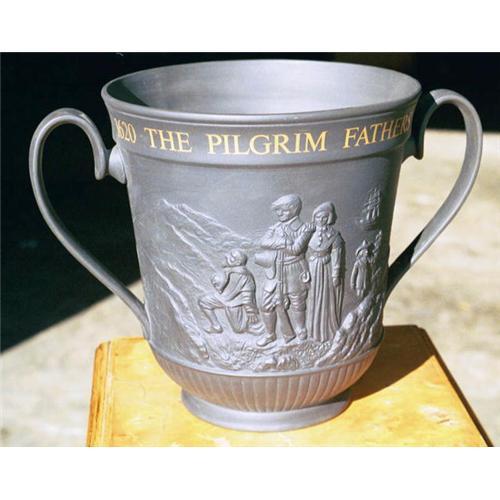 Classic Grecian style jasperware from royal doulton, commemerating 350th Anniversary of the Mayflower voyage and arrival of the Pilgrim Fathers. Fine Detailed relief by prestigious Royal Doulton company artisans makes this example a rare historical collectible for fanciers of Americana and or American history related decorative arts. Thanks Chas.