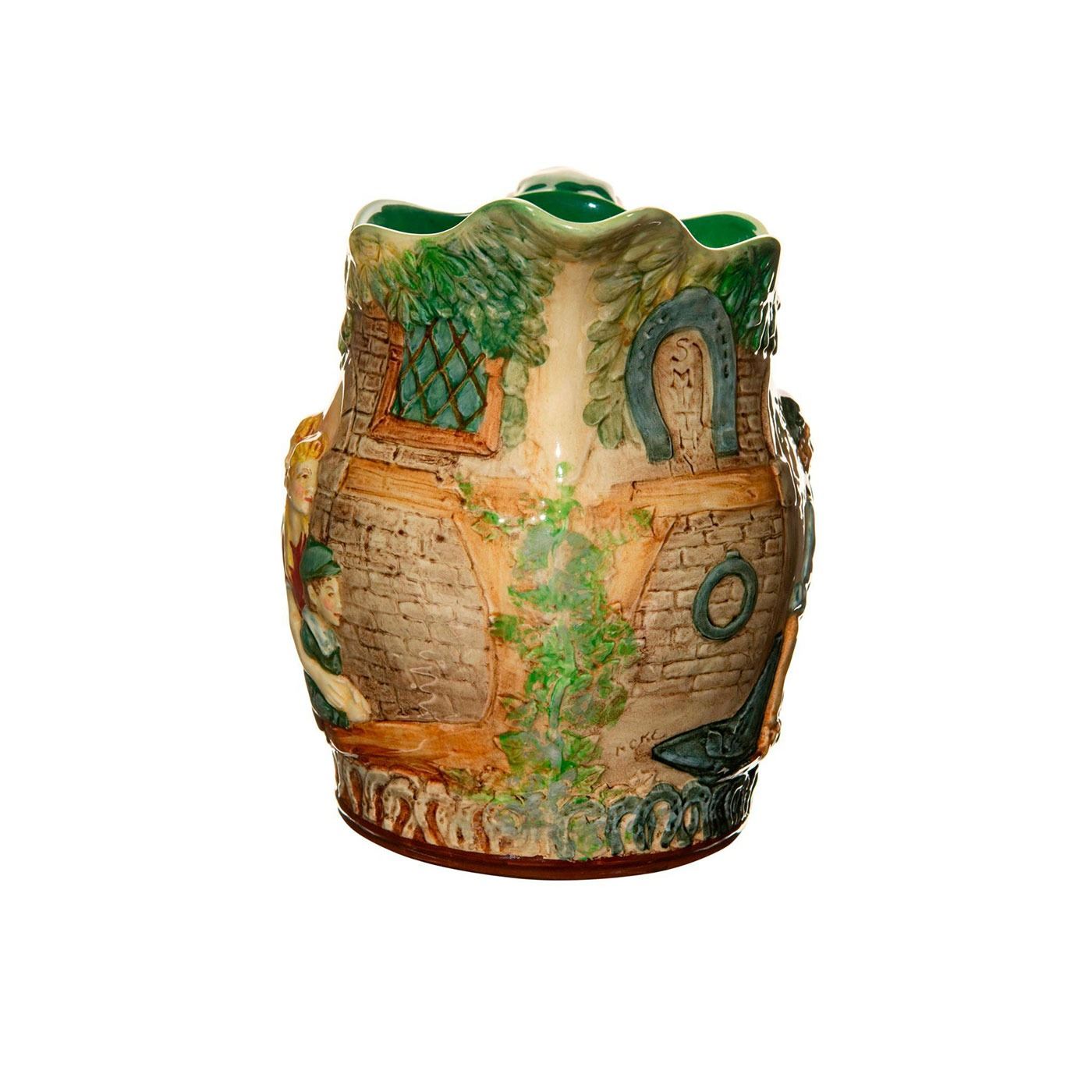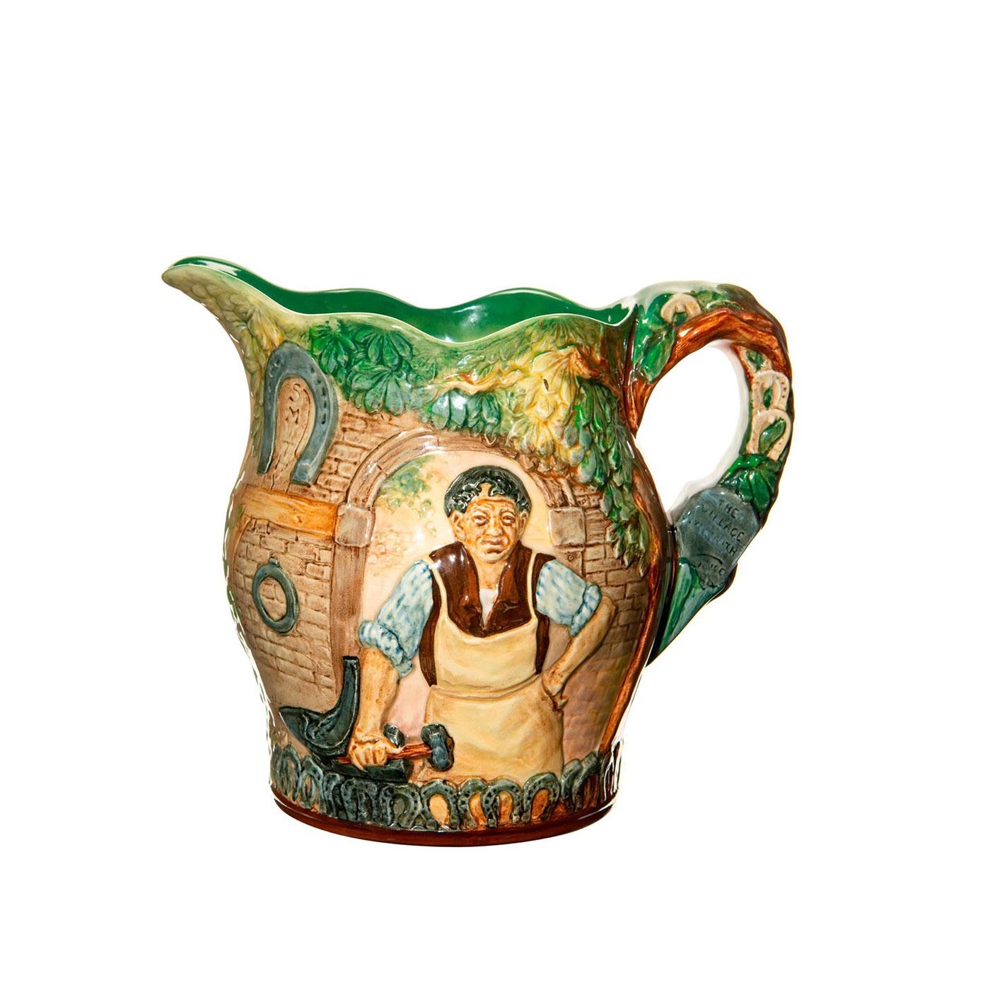 Rare "Village Blacksmith" pitcher with ahighly detailed and very colorful presentation of the village blacksmith working while a group of children walk by. This jug was housed in the Royal Doulton Museum and one of the very first editions of its time.