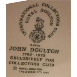 Royal Doulton toby mug of gentleman and Big Ben clock tower. Stands 4 5/16" tall and is marked on bottom with Royal Doulton crest and "International Collector's Club-Royal Doulton-D. 6656-John Doulton-1793-1873-Exclusively for Collector's Club-Royal Doulton-Tableware Ltd. 1980".
