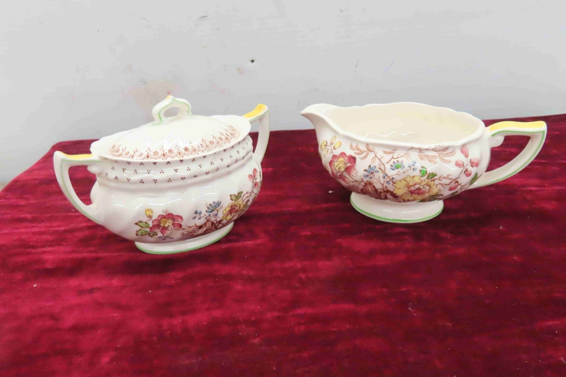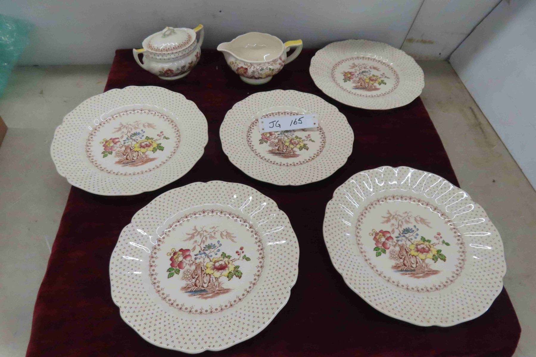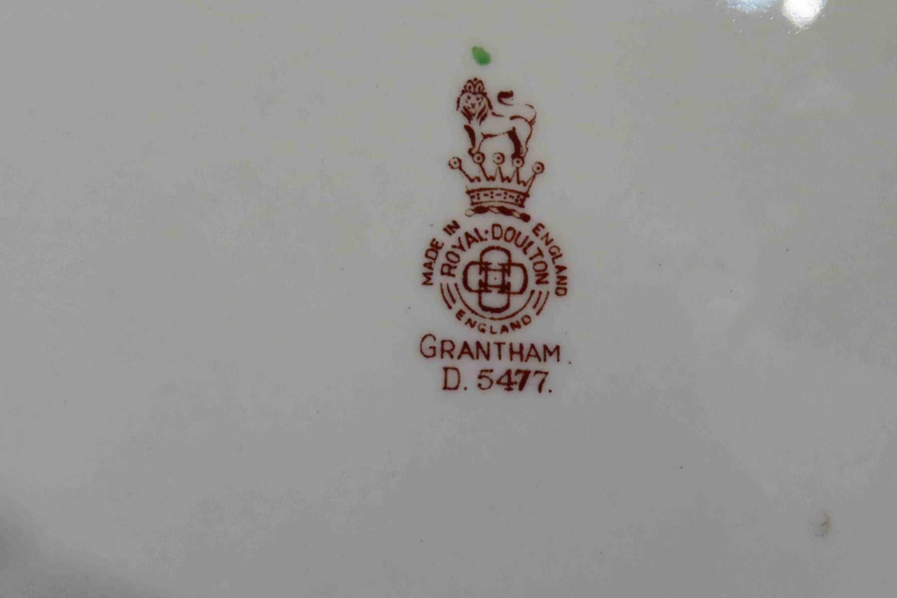 Royal DoultonGrantham D5477 Cream and Sugar, (3) Large Plates in Good Shape and (2) Smaller Plates with Chips on the Back