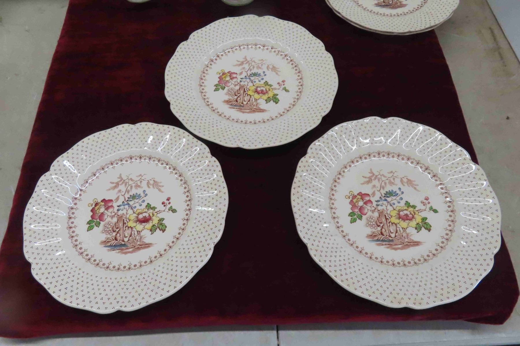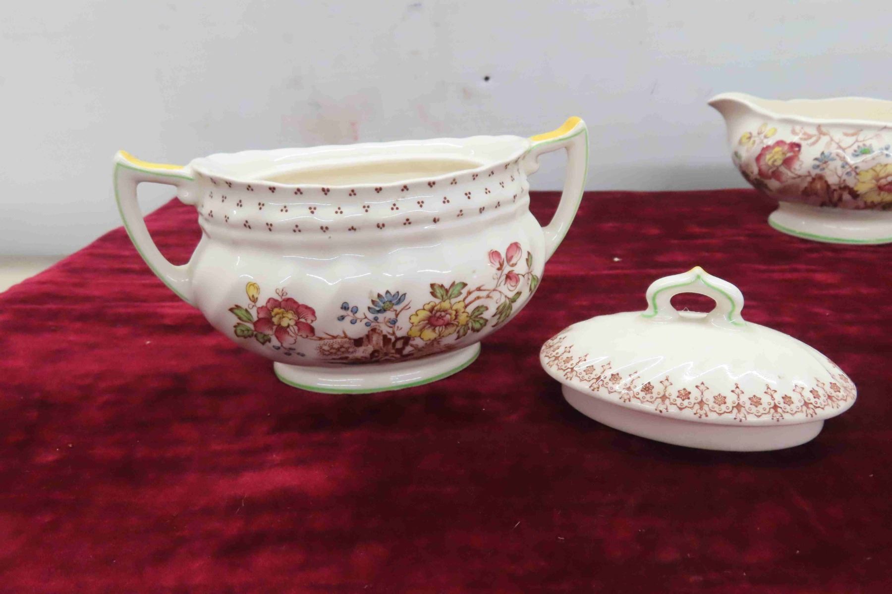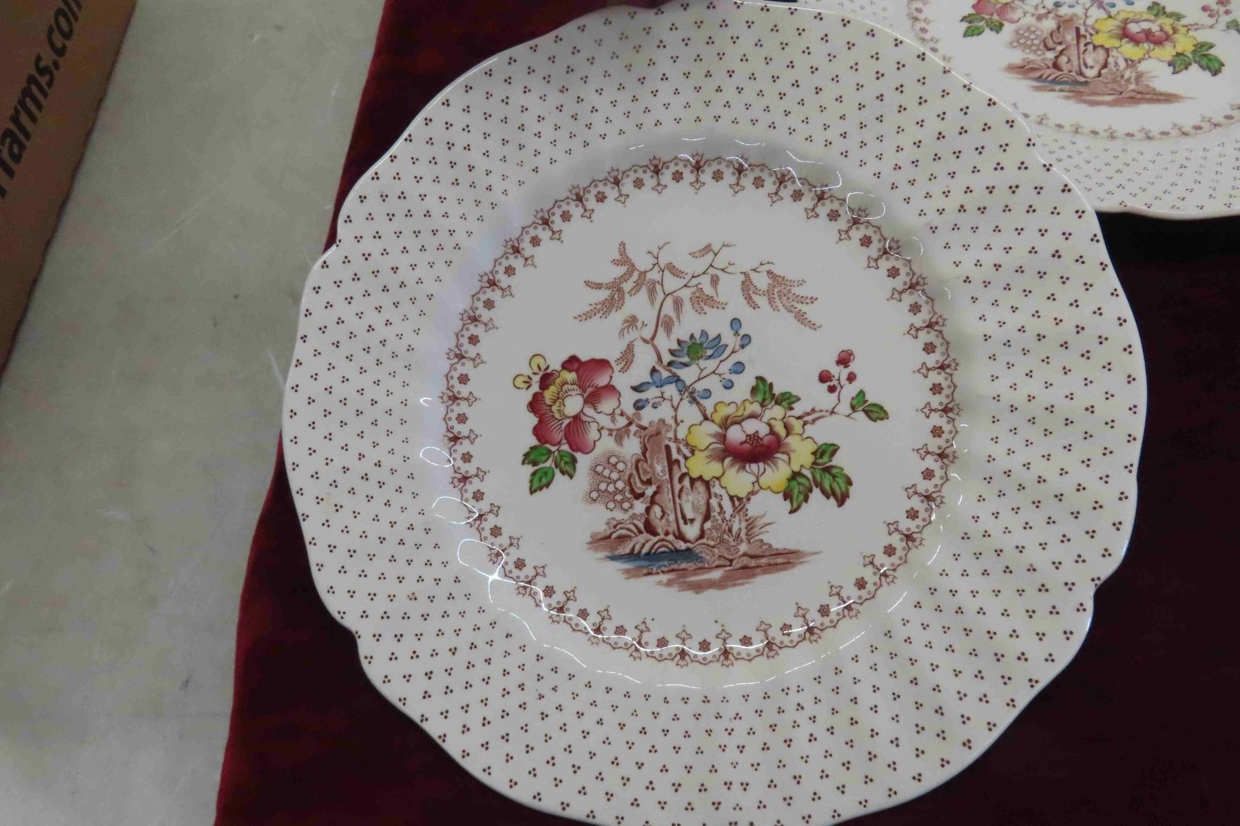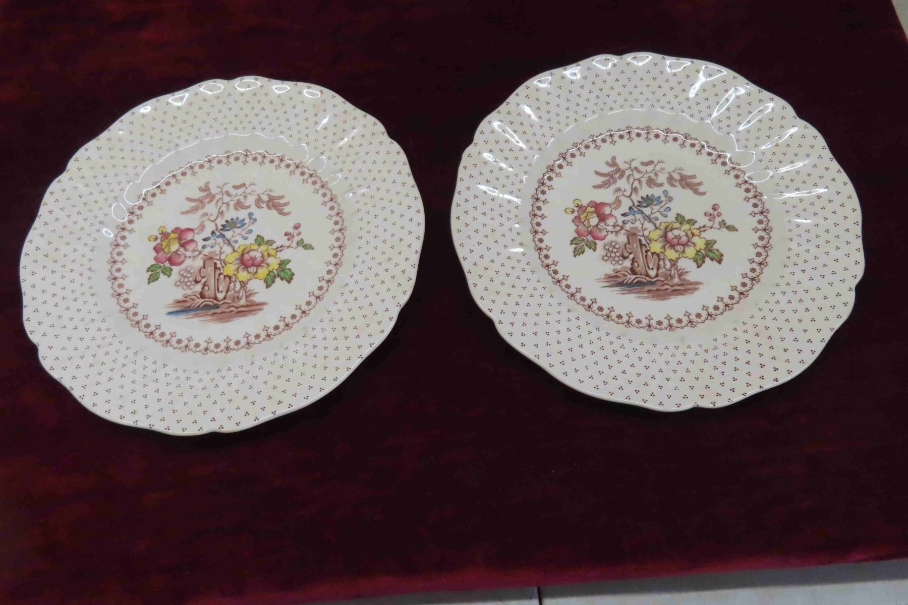 Royal DoultonGrantham D5477 Cream and Sugar, (3) Large Plates in Good Shape and (2) Smaller Plates with Chips on the Back