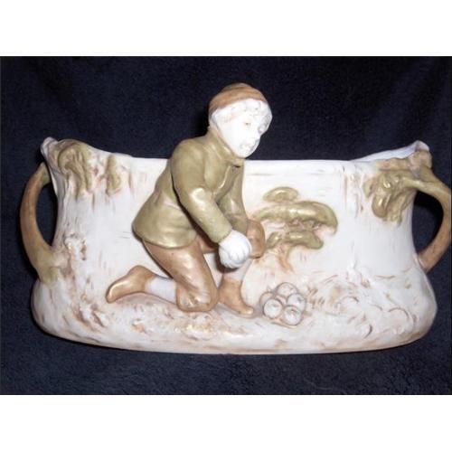 A Truly delightful jardinaire from ROYAL DUX c1900 portraying an innocent young lad playfully making snowballs...wonderful and we offer perfect and unrestored
