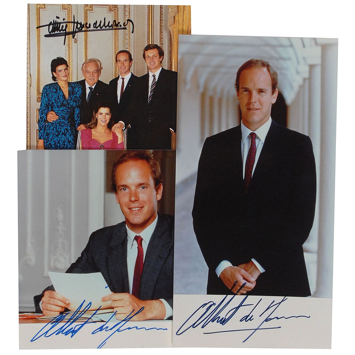Three color photos of various finishes, ranging in size from 4 x 5.75 to 6.5 x 5, one signed in black felt tip by Prince Rainier and two signed in felt tip by Prince Albert. In overall fine condition.