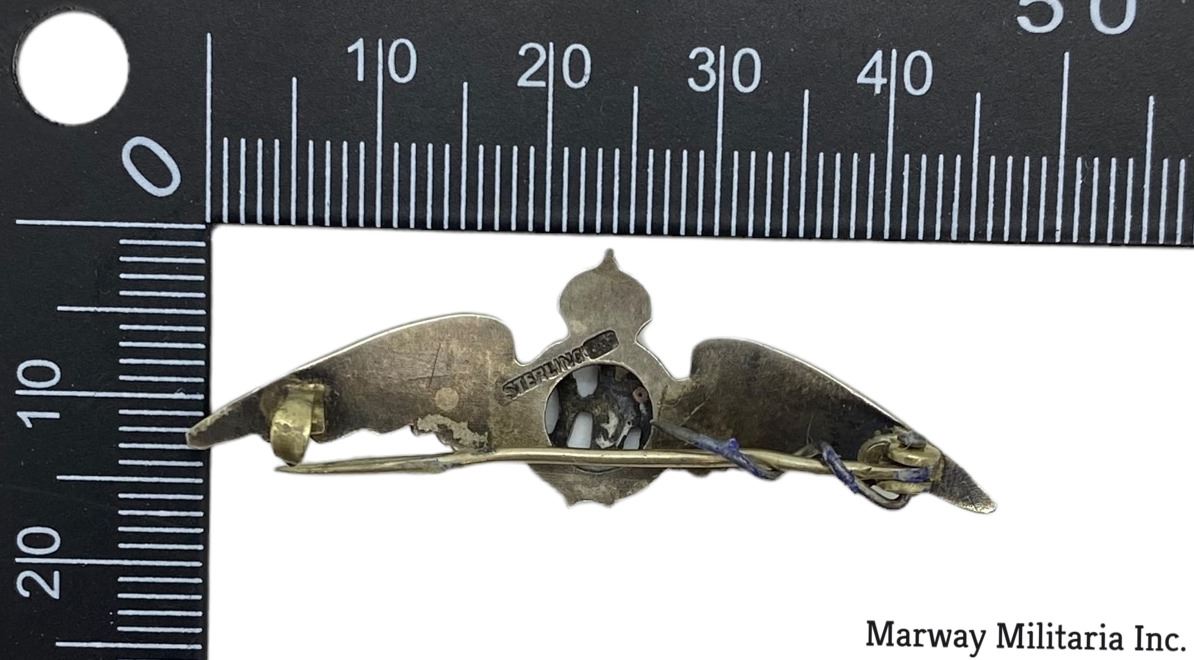 Beautifle Silver wing with coloured enamels. Pin back, reenforced with wire. STERLING Stamped.