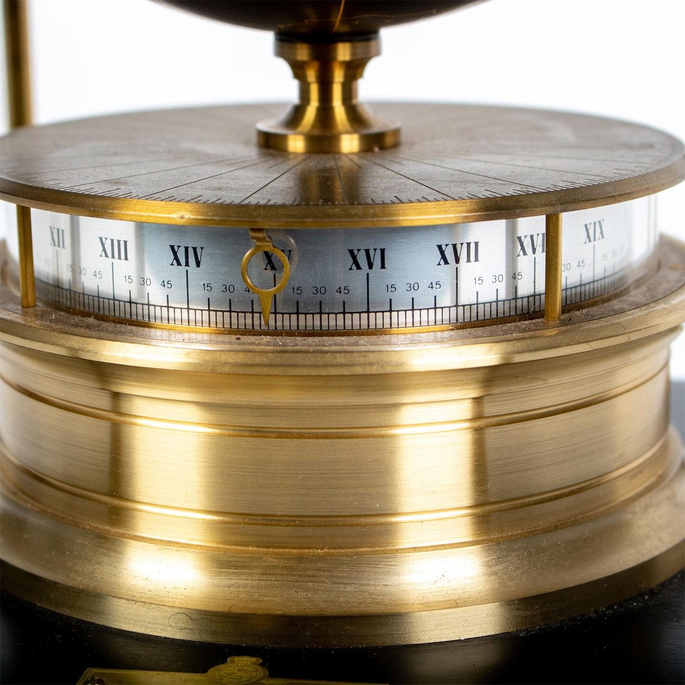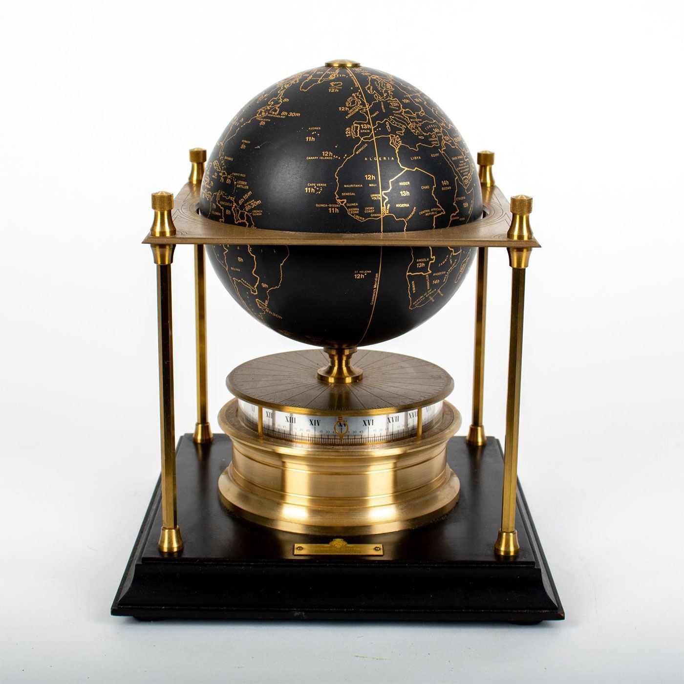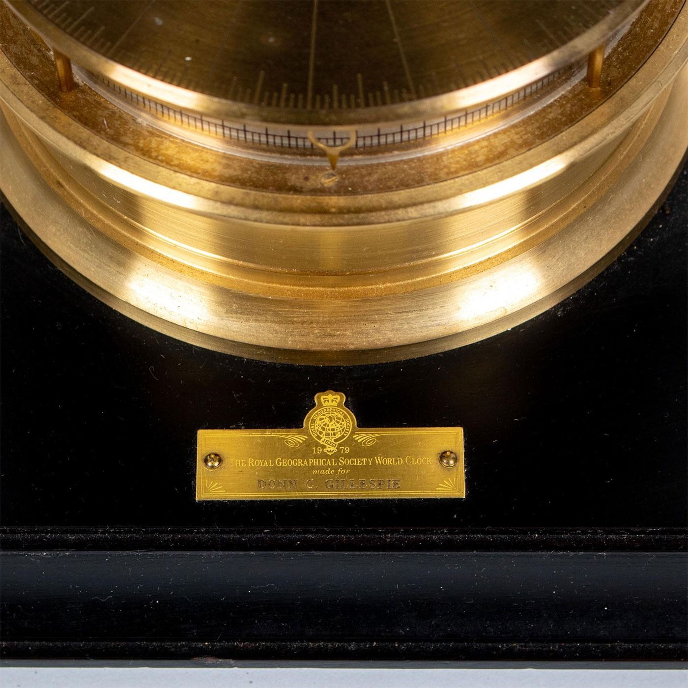 Piece crafted out of ebonized mahogany and brass embellished with 24k gold designed by Richard Good. Features a 15 jewel movement by Swiss clockmaker Arthur Imhof. Circular silver dial. Clock is manually wound, and the time is indicated in European 24 hour format. Marked Made for Donn C. Gillespie.