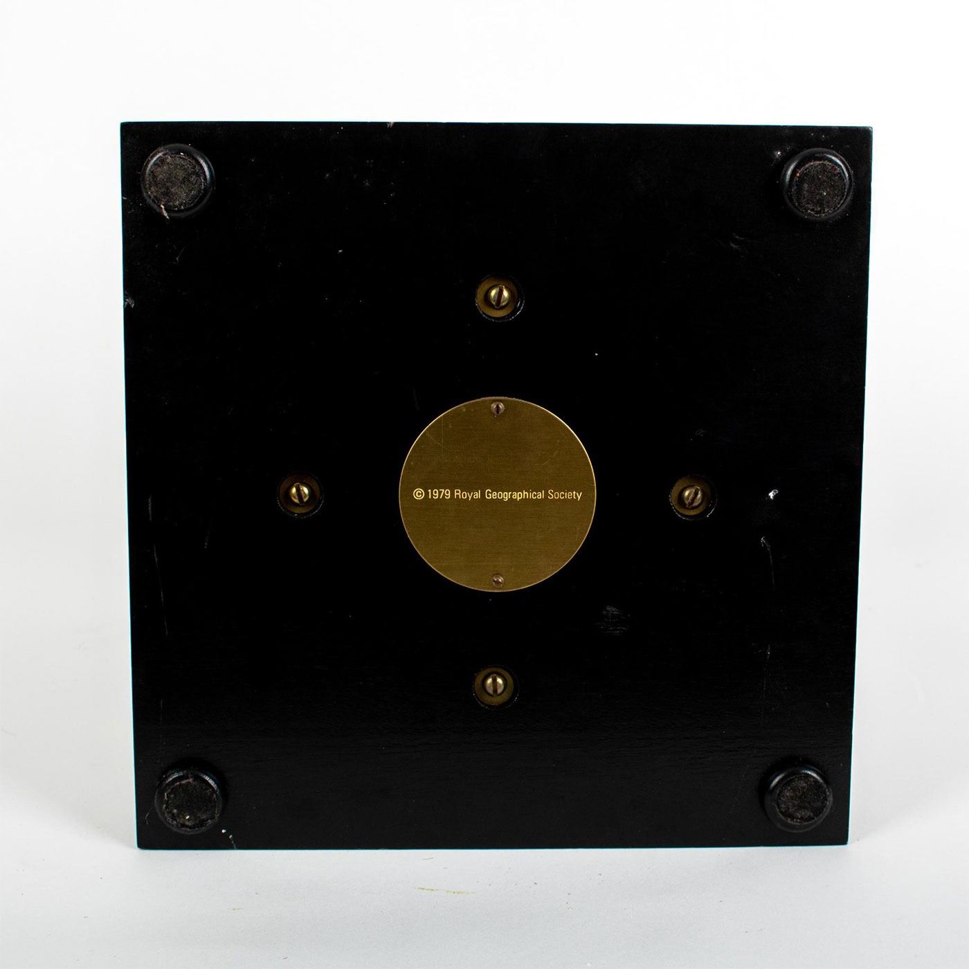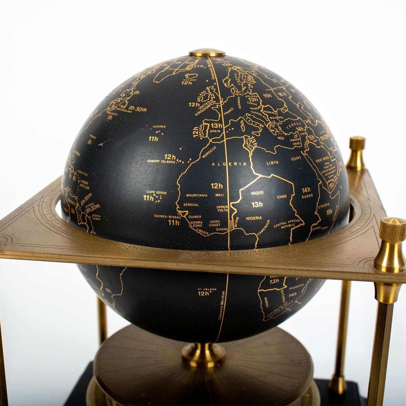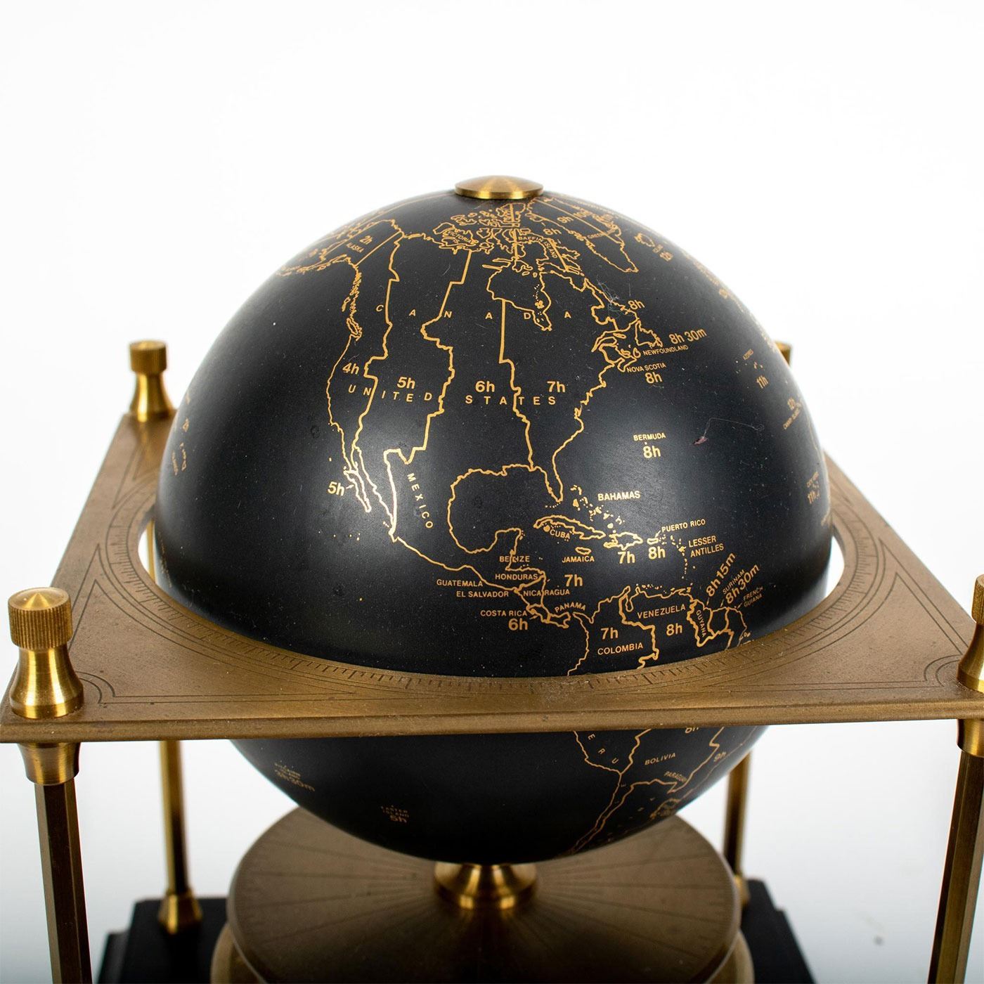 Piece crafted out of ebonized mahogany and brass embellished with 24k gold designed by Richard Good. Features a 15 jewel movement by Swiss clockmaker Arthur Imhof. Circular silver dial. Clock is manually wound, and the time is indicated in European 24 hour format. Marked Made for Donn C. Gillespie.