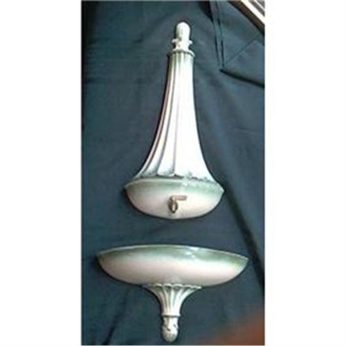 Decorative Wall Fountain by Haeger Pottery. Marked, "Royal Haeger #R1691 USA". This wall fountain pottery is in excellent condition, the top piece is a little taller than 19 inches and the bottom part is 7 inches. This is made to look like a fountain.