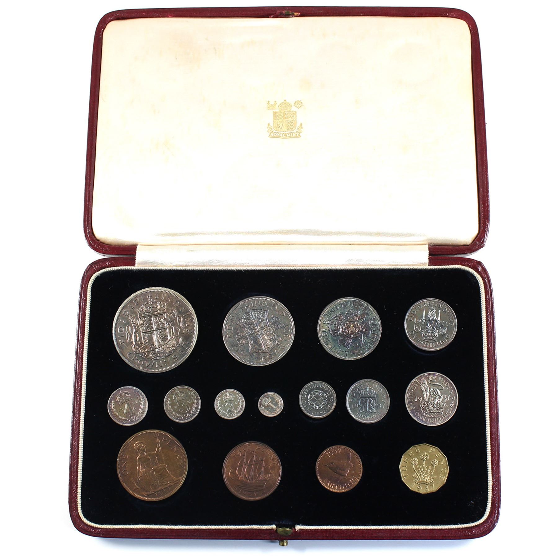 Royal Mint Issue: 1937 Great Britain 15-coin Specimen Set in Original Royal Mint Case. The Silver coins contain attractive blue and some light rainbow toning.