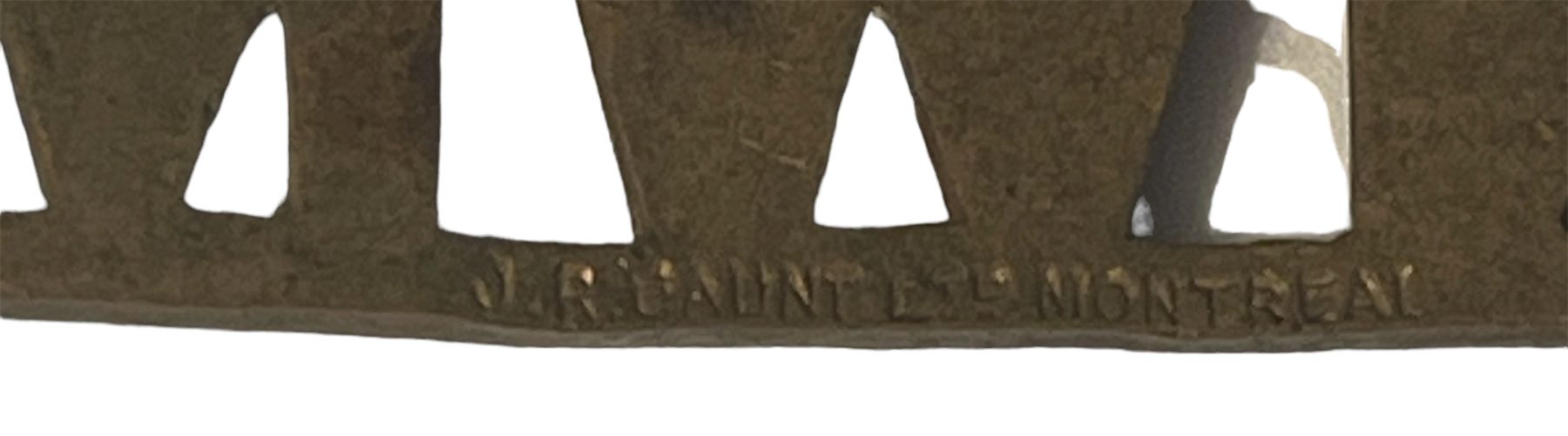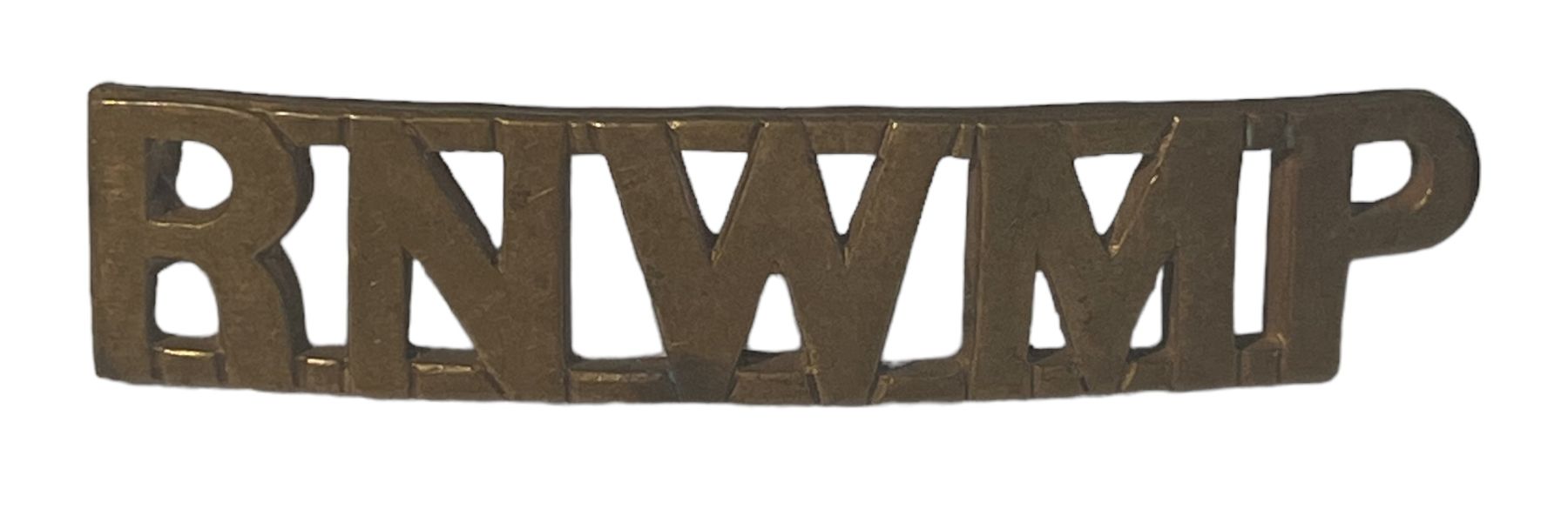 RNWMP. Brass metal showing some age toning, with one lug fastener remaining. Gaunt Makers stamp on reverse.