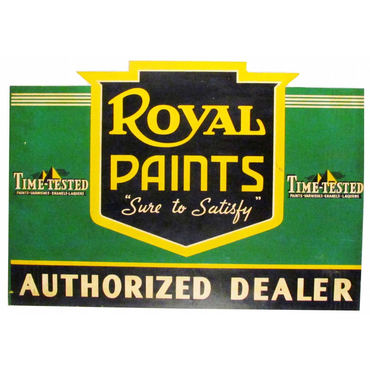 Royal Paints Steel Flange Sign, two sided. Some minor discoloration otherwise very good condition. 26 X 18 inches.