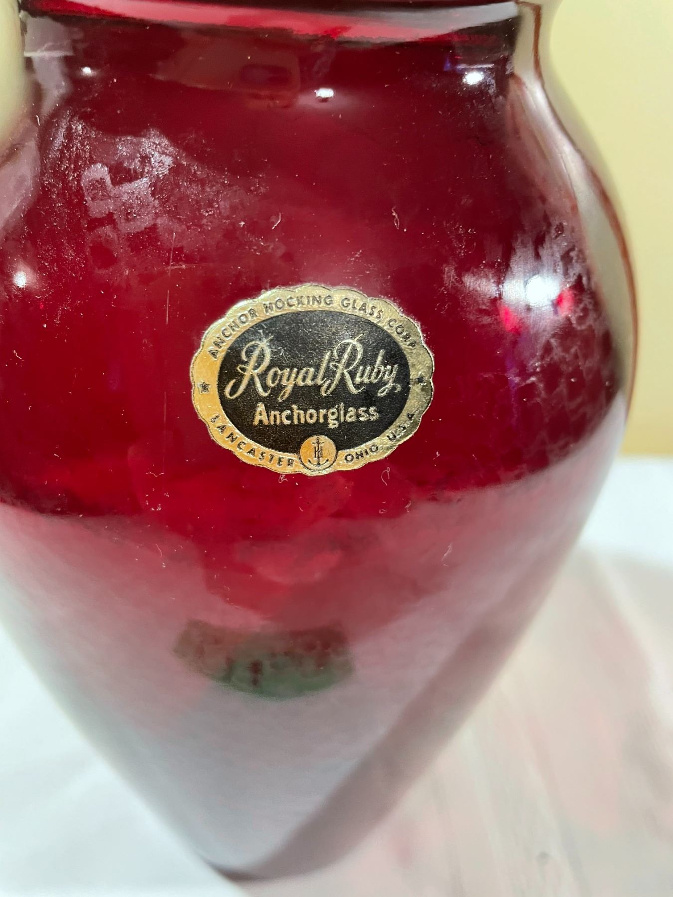 (1) Royal Ruby Anchorglass Vase 9 inches high
