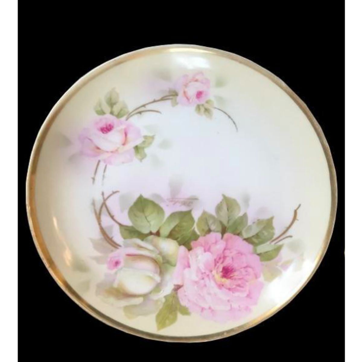 Early 1900's Royal Rudolstadt Prussia rose motif plate ( 8 1/4" D ) signed by the artist F Hahn.