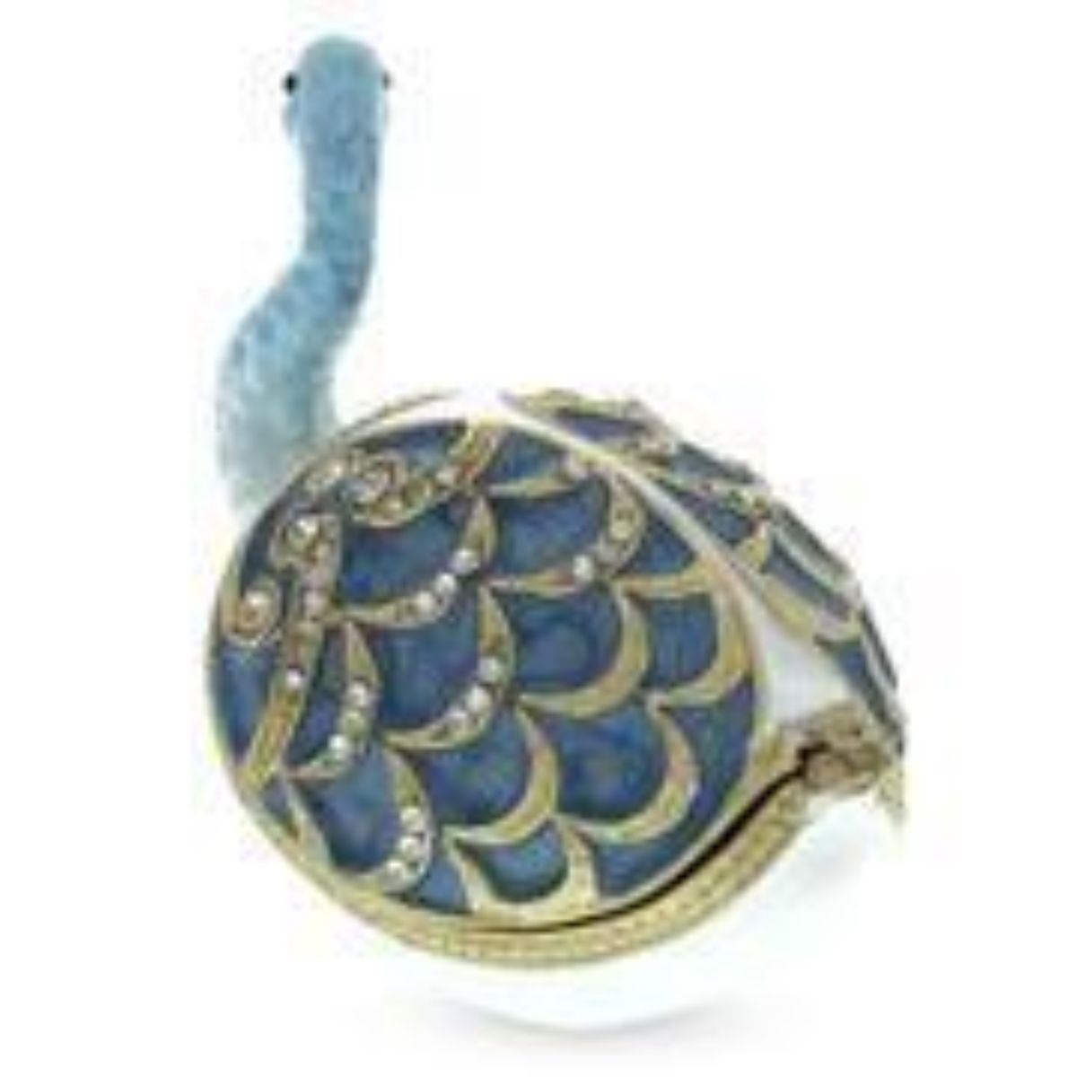 Hand-painted Royal Russian Swan, opens to reveal a hidden trinket jewel box compartment with magnetic closure. Enamel & gilt over pewter with embedded Austrian crystals. 2 1/2" H x 2 1/4" L. Comes with gift box. Â