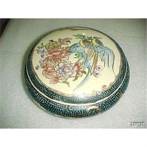 Royal Satsuma Powder Jar. 8-1/4" wide. Good condition with no damage.It has red felt on the bottom , so dont write and ask me what the mark is.