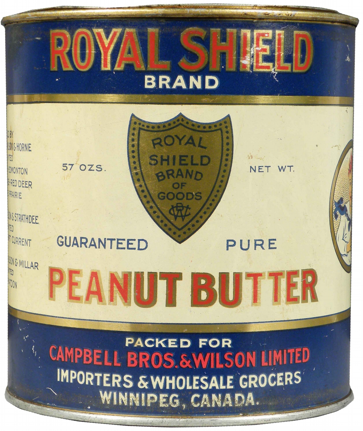 Royal Shield Brand Peanut Butter Tin. Some discoloration otherwise very good condition.