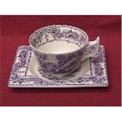 This is an exquisite Royal Staffordshire cup& saucer from 1900's in perfect condition. London shape pedestal cup with thumb rest and deep rectangular saucer and purple transfer print. cup's H:2.1/4" saucer's W: 6"