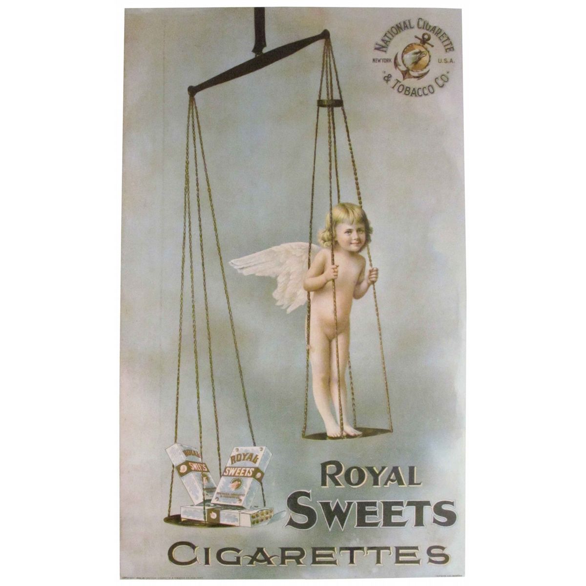 Royal Sweets Paper Sign. Copyright 1895 by the National Cigarette & Tobacco Co. NY Forbes Co. Boston Lithographers. Professionally linen backed. Restoration top and right perimeter, otherwise good condition. 15 X 25 inches.