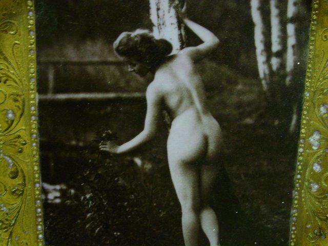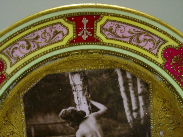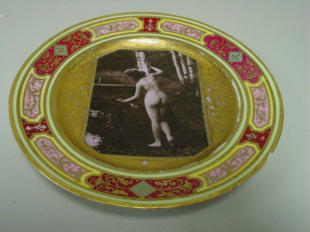 With picture depicting "Female Nude" in center. Approx. 9.5" Diam. Please read our terms of sale.