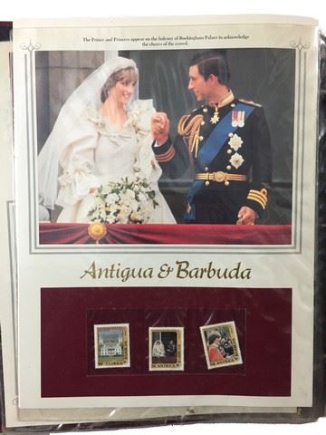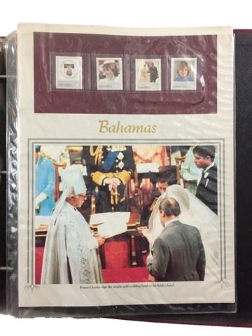 The Royal Wedding Philatelic Panels Collection Book (ca. 1981). A collection of historic Royal Wedding commemorative stamps (15) complemented by full-color photographs (4) of the Prince Charles of Wales to Lady Diana Spencer. There are stains on the plastic sleeves. Near Mint. (13" X 14.5").