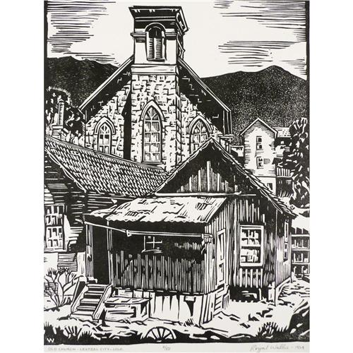 Royal Willis, Woodblock, "Old Church-Central City-Colorado", 11/50, 9 1/2" x 7 1/4", Signed lower right, 1934.