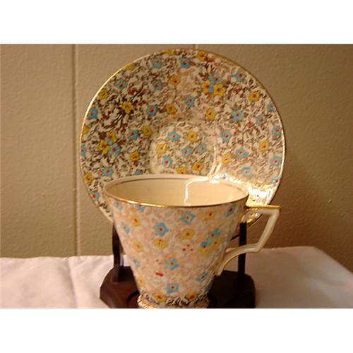 Here is a Hand Enameled Royal Winton Chintz cup and saucer. This is the "Gold Leaves" pattern #4501G.