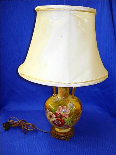 Signed Royal Winton Handpainted Lamp, *damaged shade, lamp has been repaired on top and small chips, measures 21"