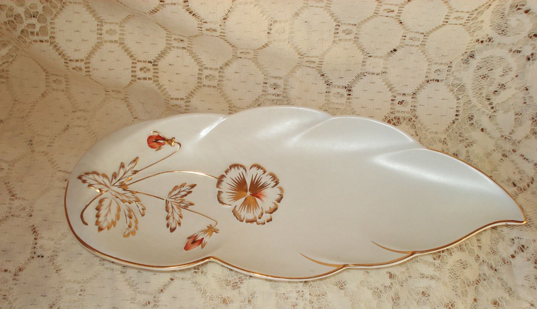 Royal Winton Leaf Serving Dish with Gold Trim Embossed Flower