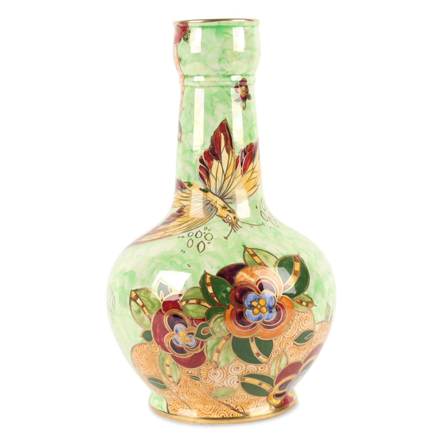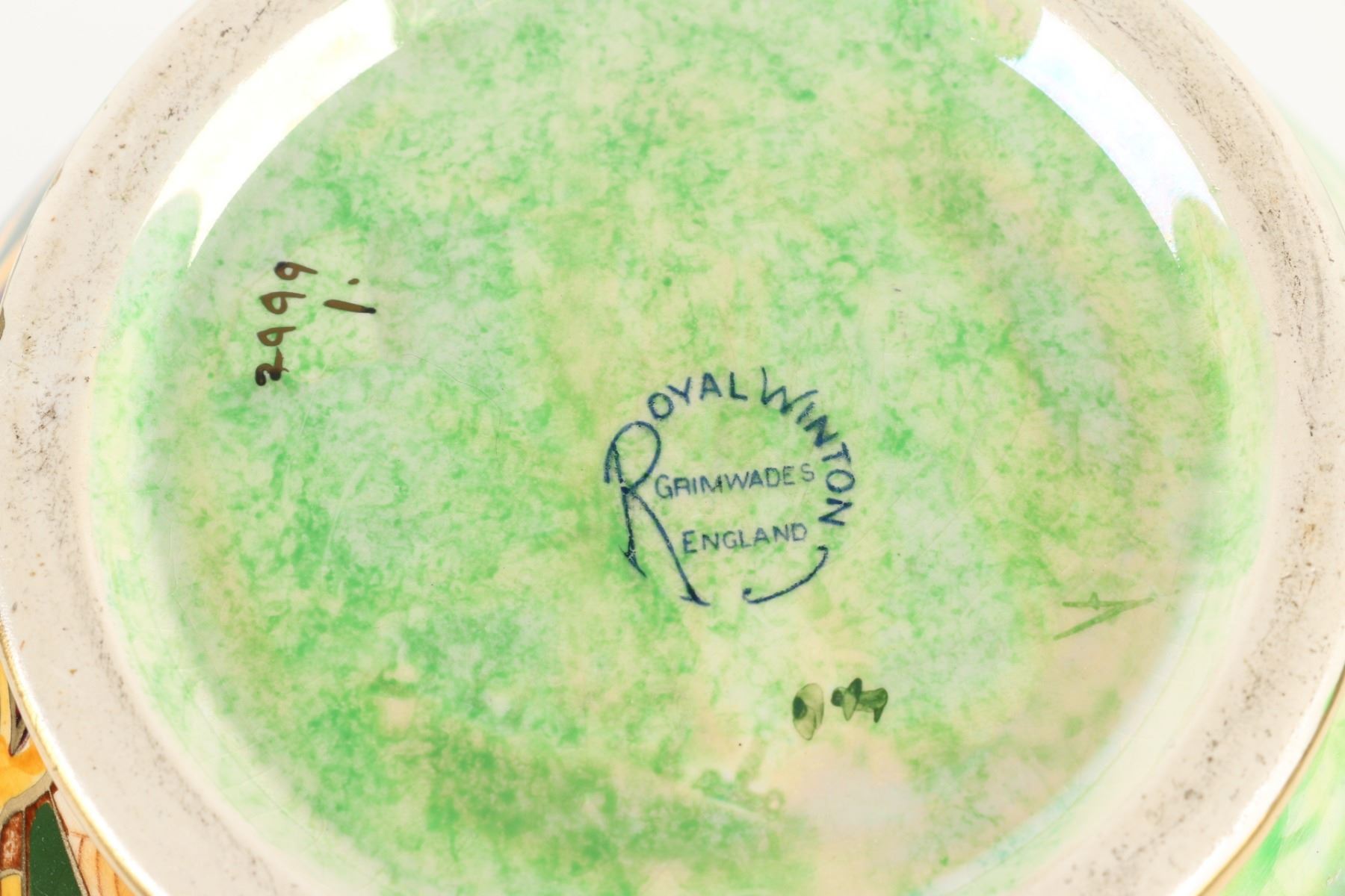 Lot 212 - English. Painted with flowers and butterflies. Marked, "Royal Winton - Grimwades, England". 12.25” x 8”. Minor uniform surface crazing. $100-200.