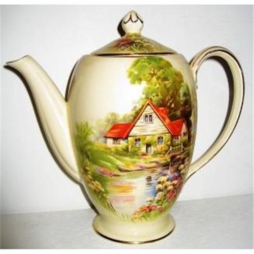<tr><td>Title:Royal Winton Red Roof Coffee Pot</td></tr>
