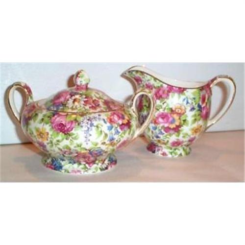 <tr><td>Title:Royal Winton Summertime Chintz Cream and Sugar</td></tr>