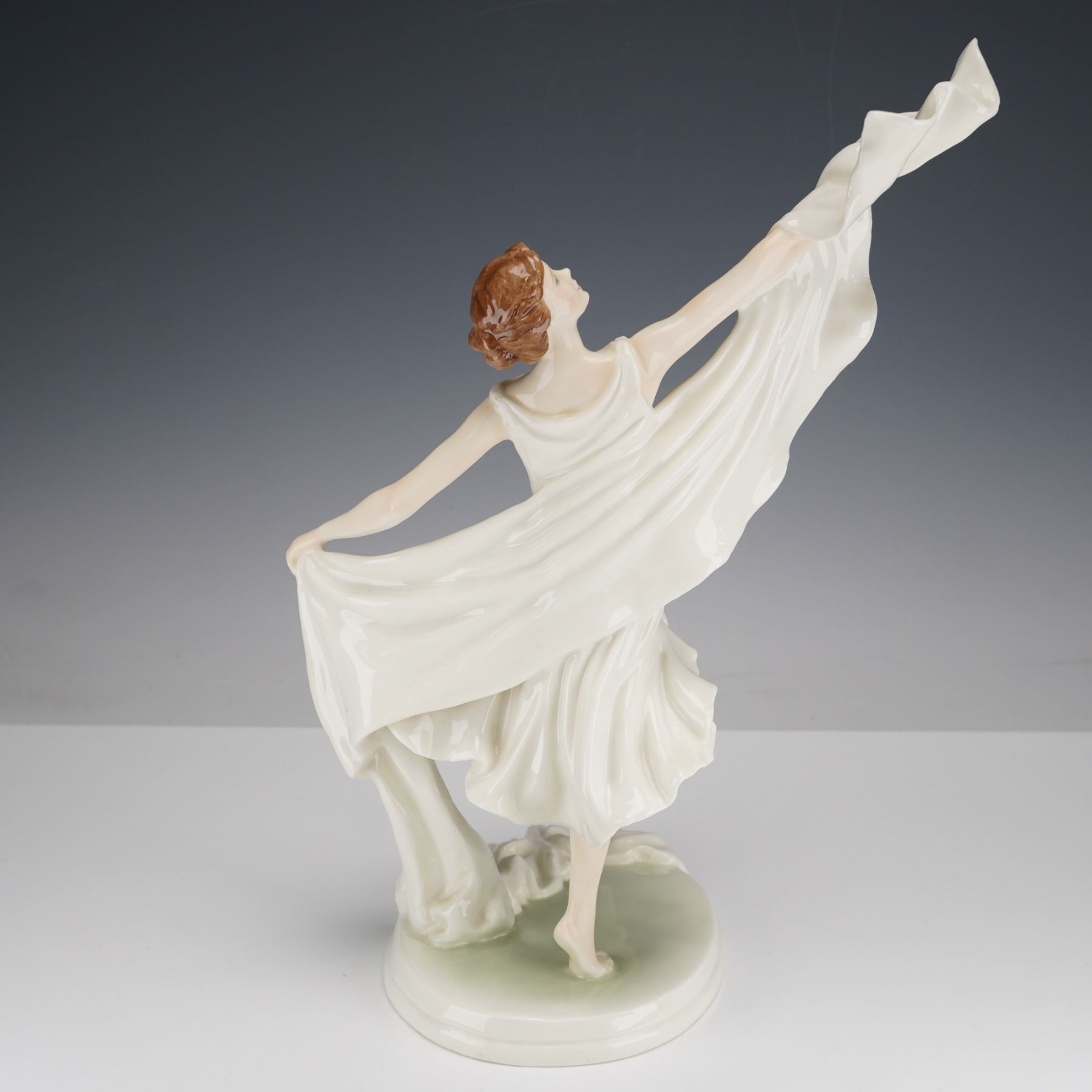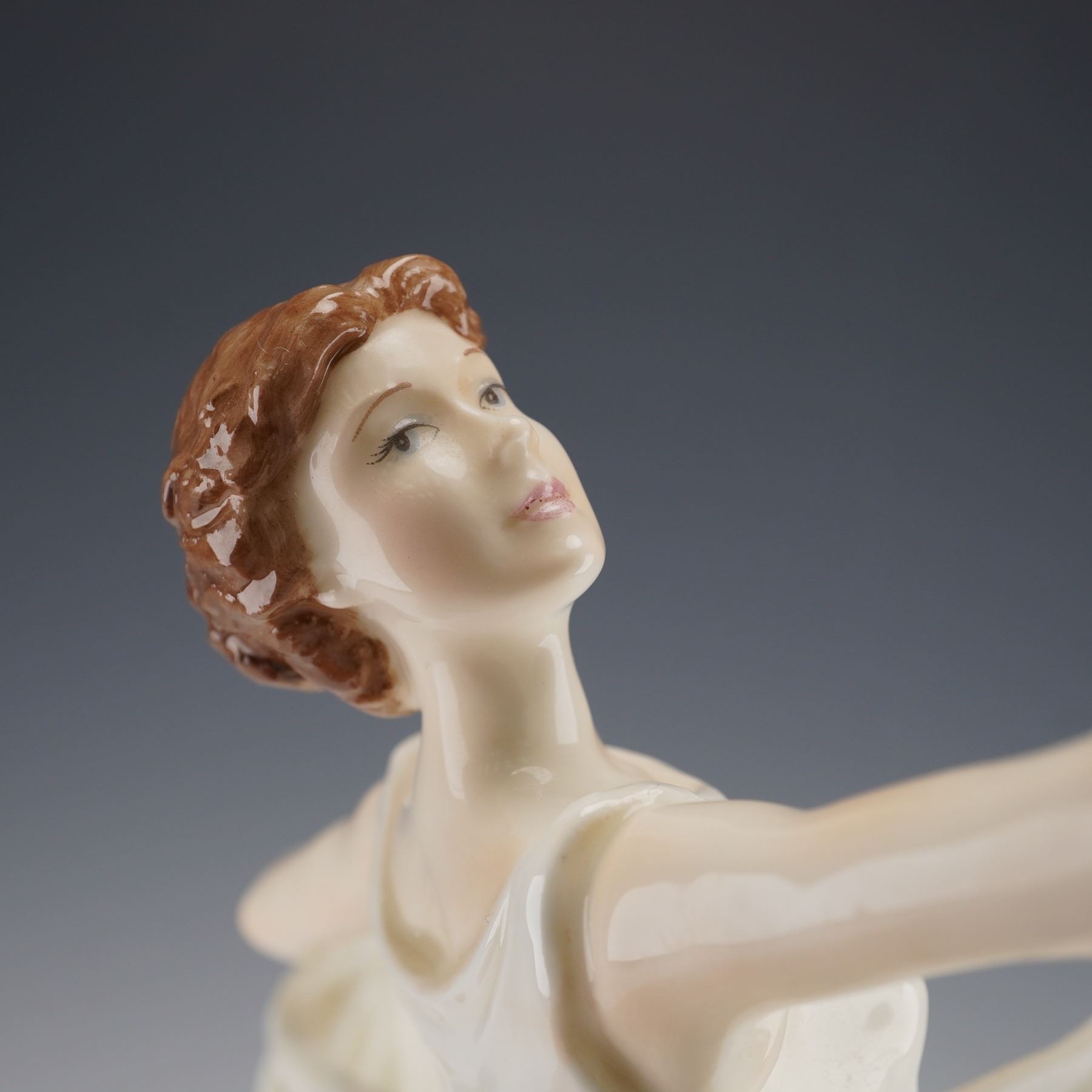A limited edition fine bone china, specially commissioned to mark the millennium. This graceful figure depicts a woman in flowing robes, dynamically posed with an uplifted arm and swirling drapery. Royal Worcester backstamp.