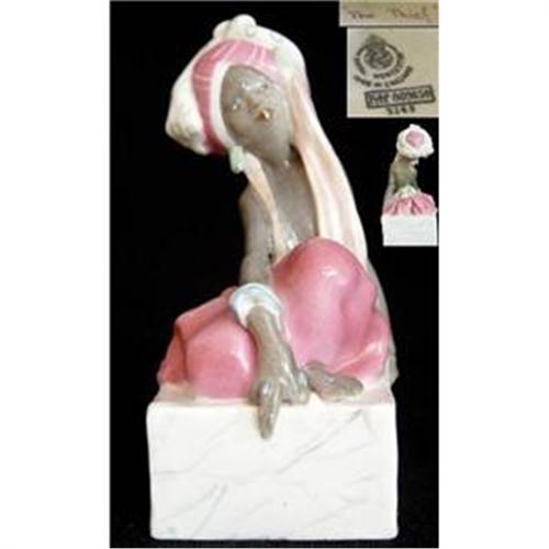 Royal Worcester Figurine The Thief RW3145 Modelled By Gwendolen Parnell 1936-c1955 Pink Skirt, Spotted And Striped Pink And White Turban, Marbled White Plinth.