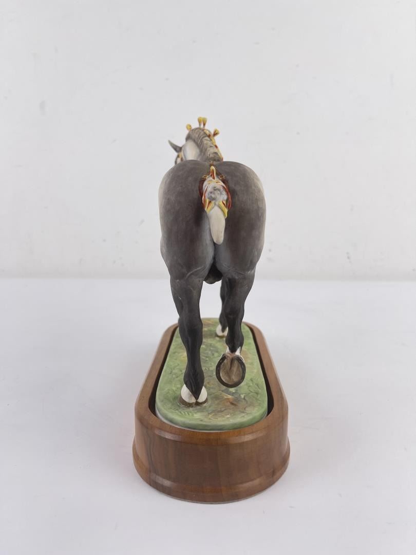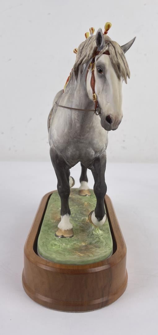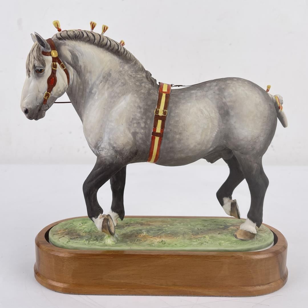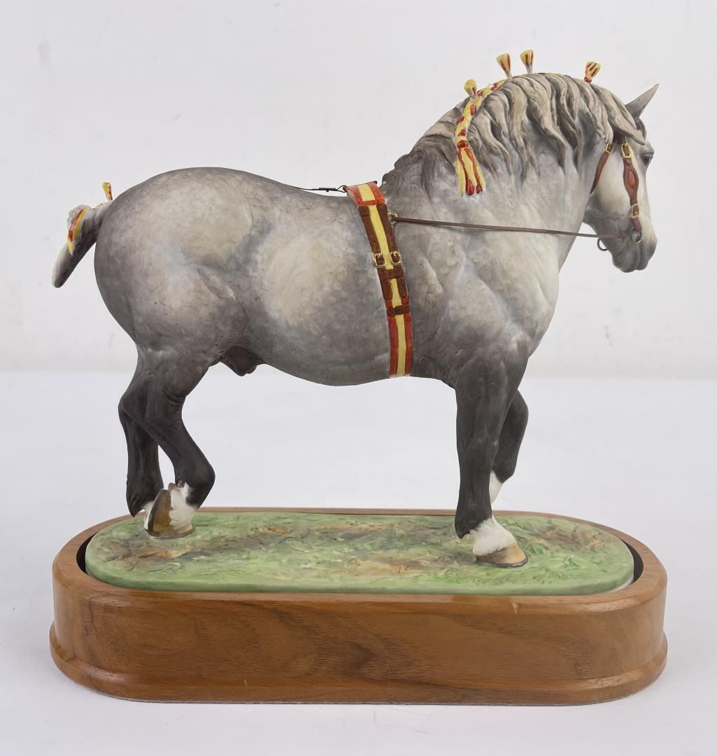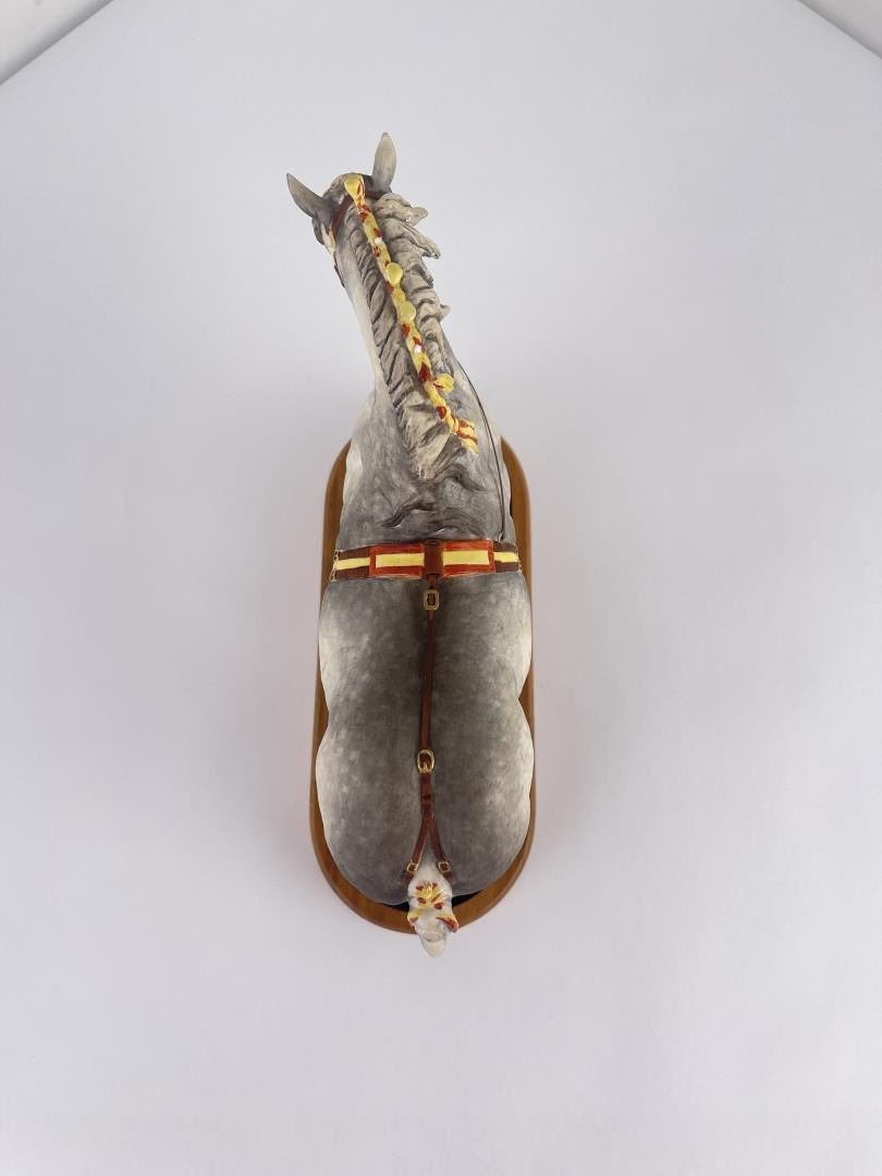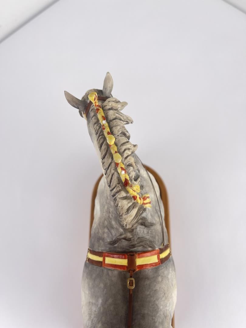 10" tall, 10 3/4" long including base. Missing a few mane tassels as shown.