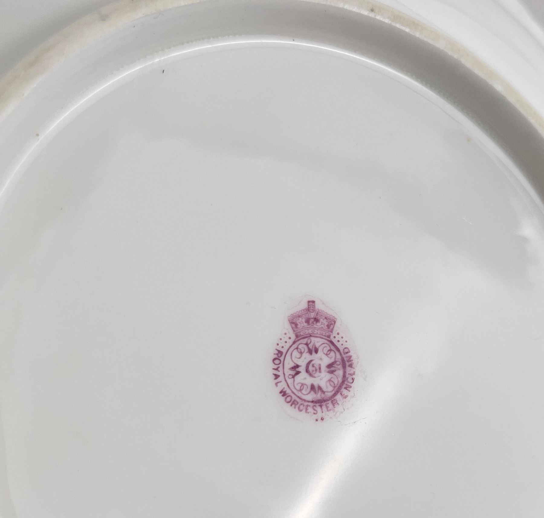 Appears to have a firing or hairline. 9 1/2" diameter.